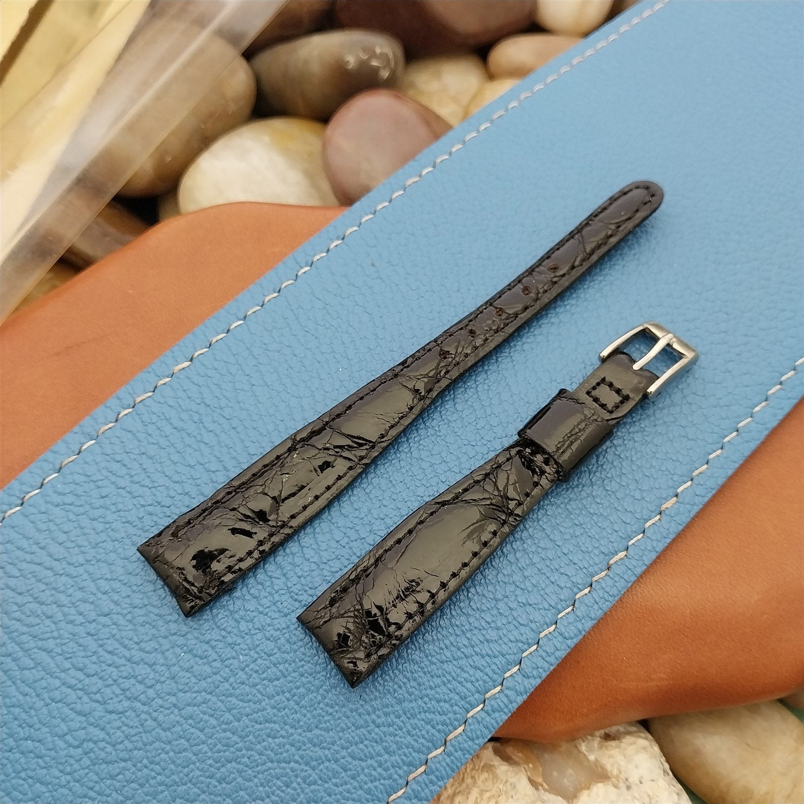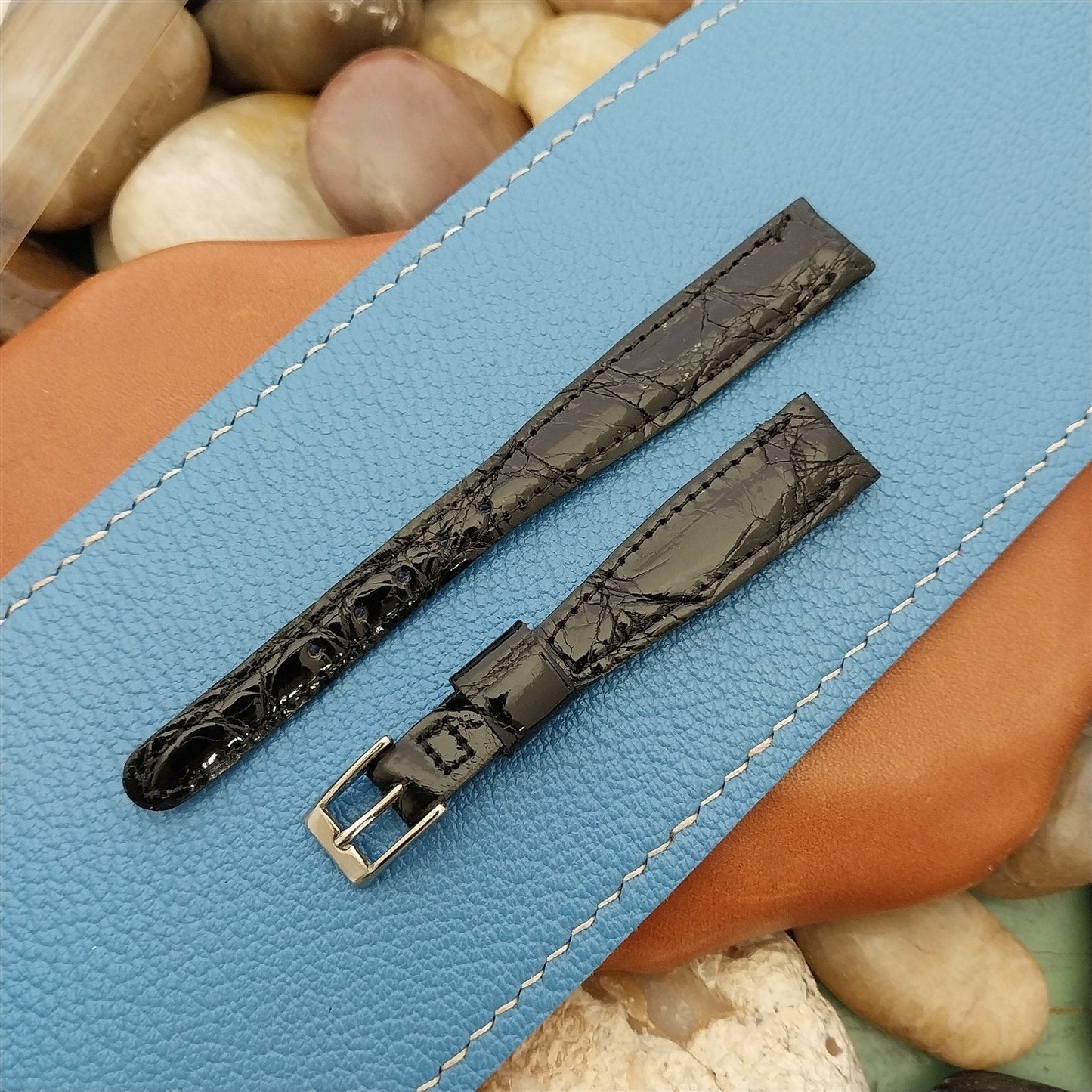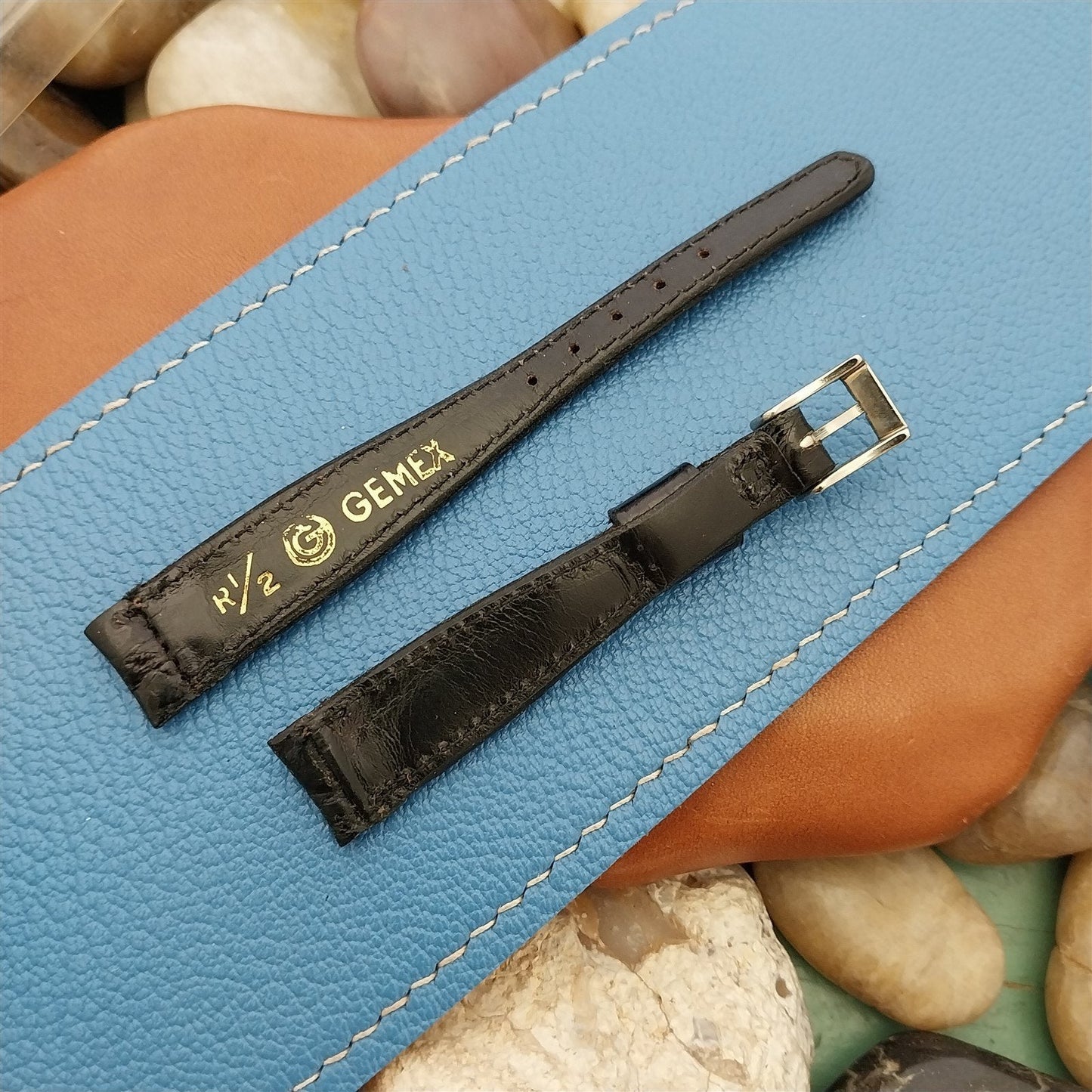 1/2" 13mm Black Alligator Ladies Gemex nos Unused 1950s Vintage Watch Band