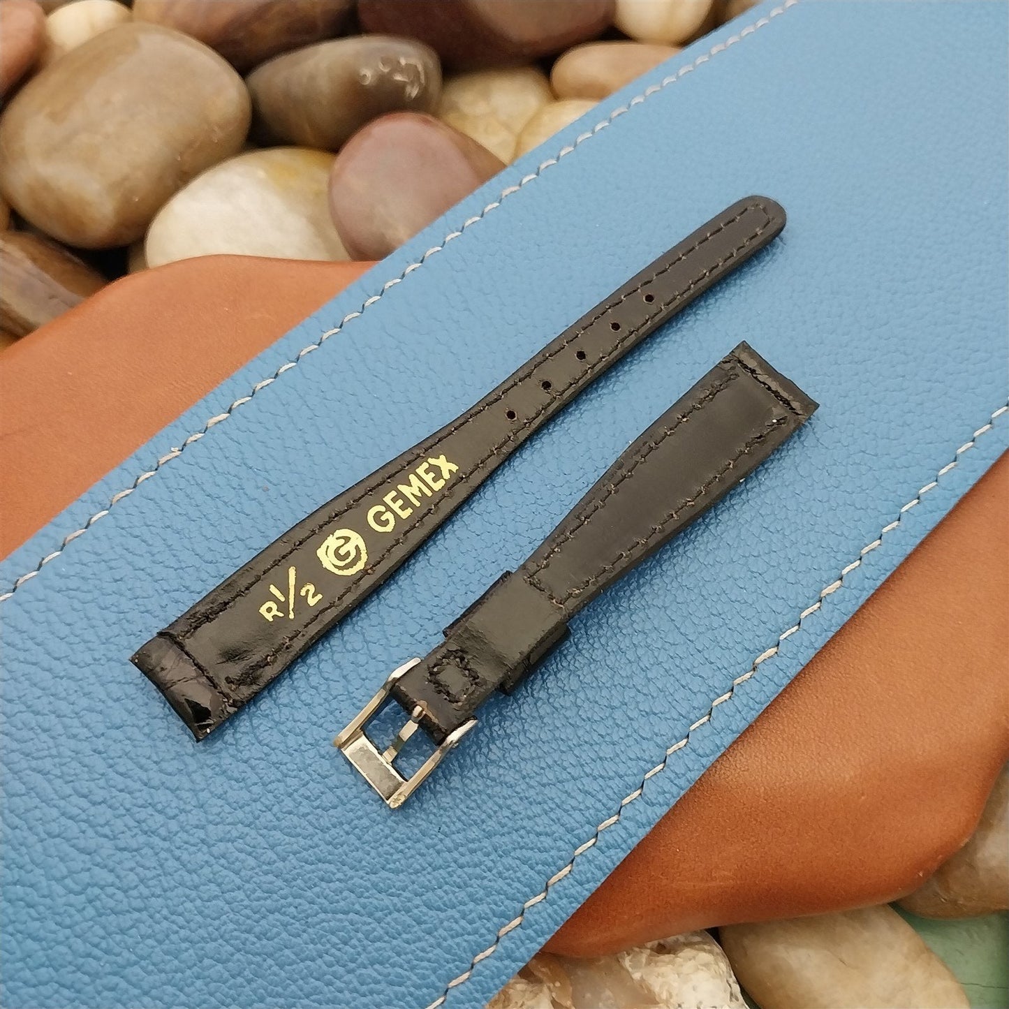 1/2" 13mm Black Alligator Ladies Gemex Unused nos 1950s Vintage Watch Band