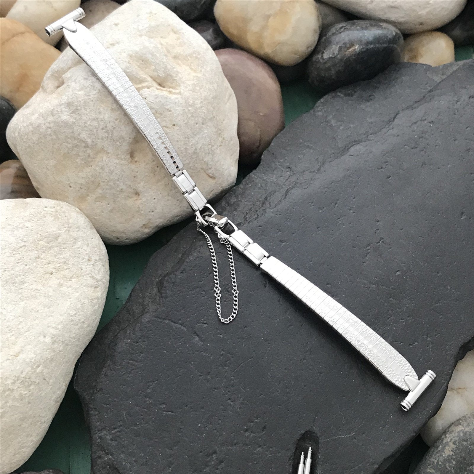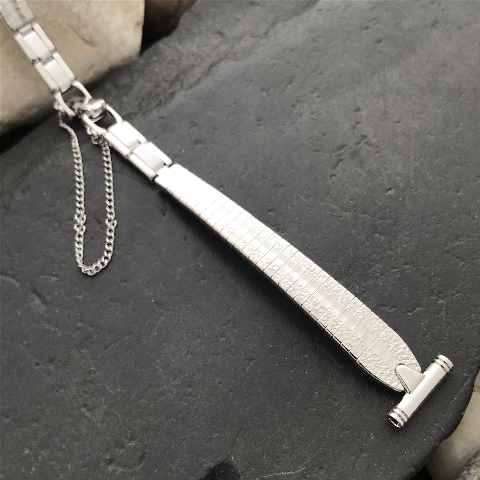 1/2" 1970s Bulova Rhodium Plate Stainless Steel Unused Ladies Vintage Watch Band