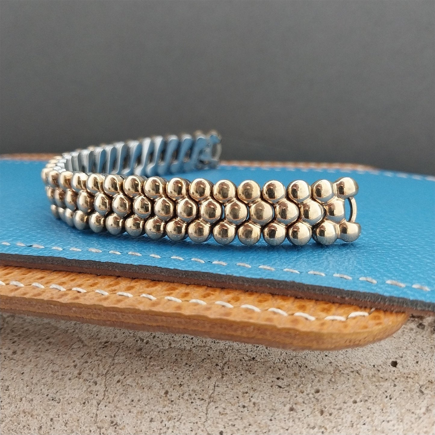 - NOS unused 1950s old-stock Drema 1/20 10k yellow gold-filled expansion cocktail watch bracelet.