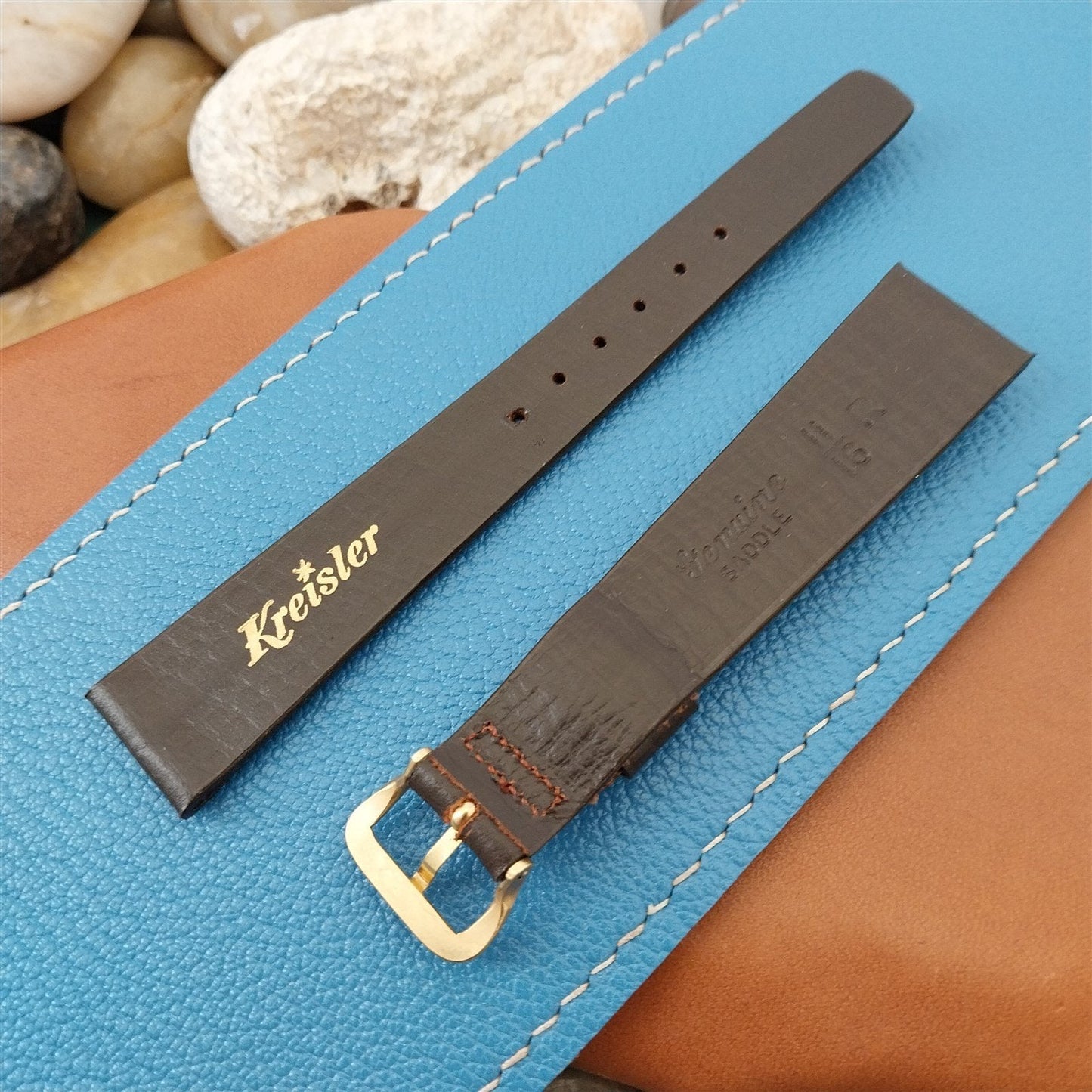 11/16 Kreisler Brown DuoLine Saddle Leather Classic nos 1960s Vintage Watch Band