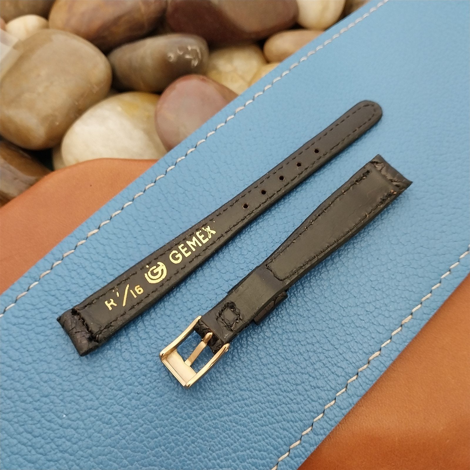11mm Black Alligator Ladies Gemex Unused nos 1950s Vintage Watch Band