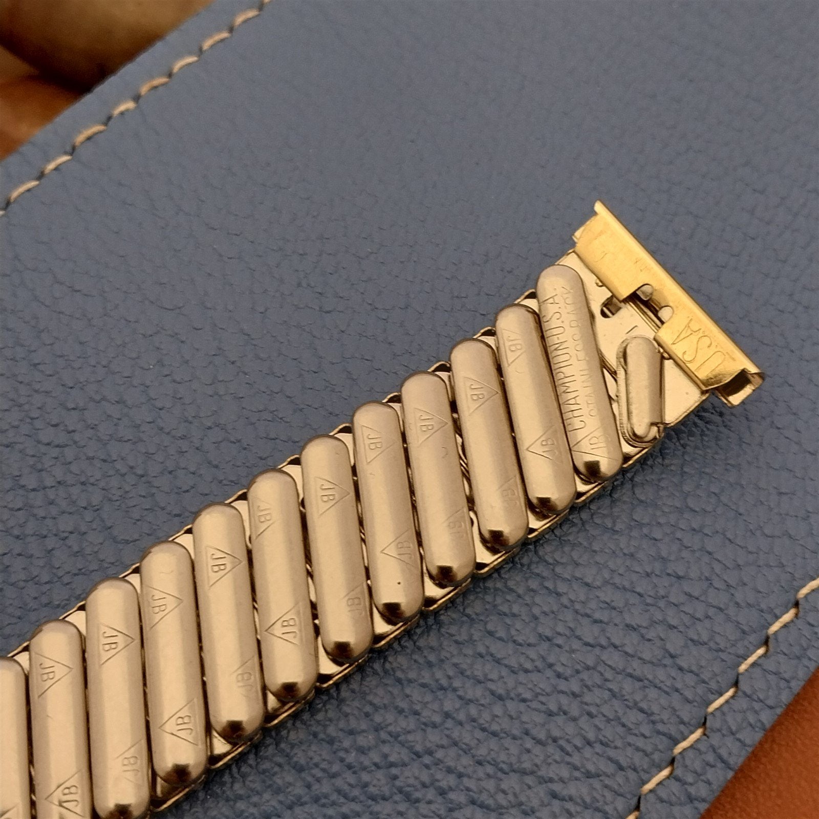 - NOS unused 1950s old-stock JB Champion Diamond Jim yellow gold-filled scissor-expansion watch bracelet.