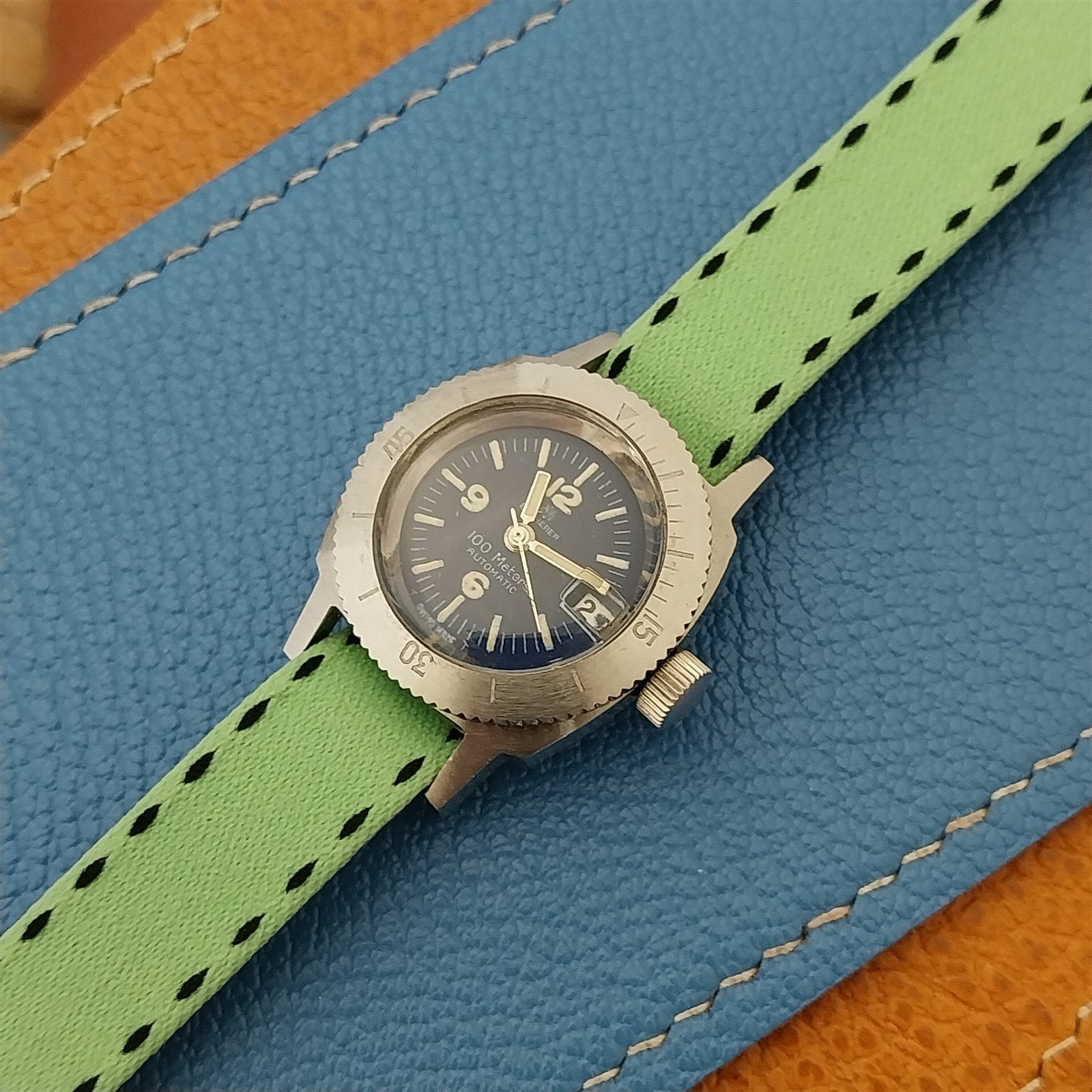 12mm Eulit Logo Buckle Perlon Ladies Green Single Pass 1960s Vintage Watch Band