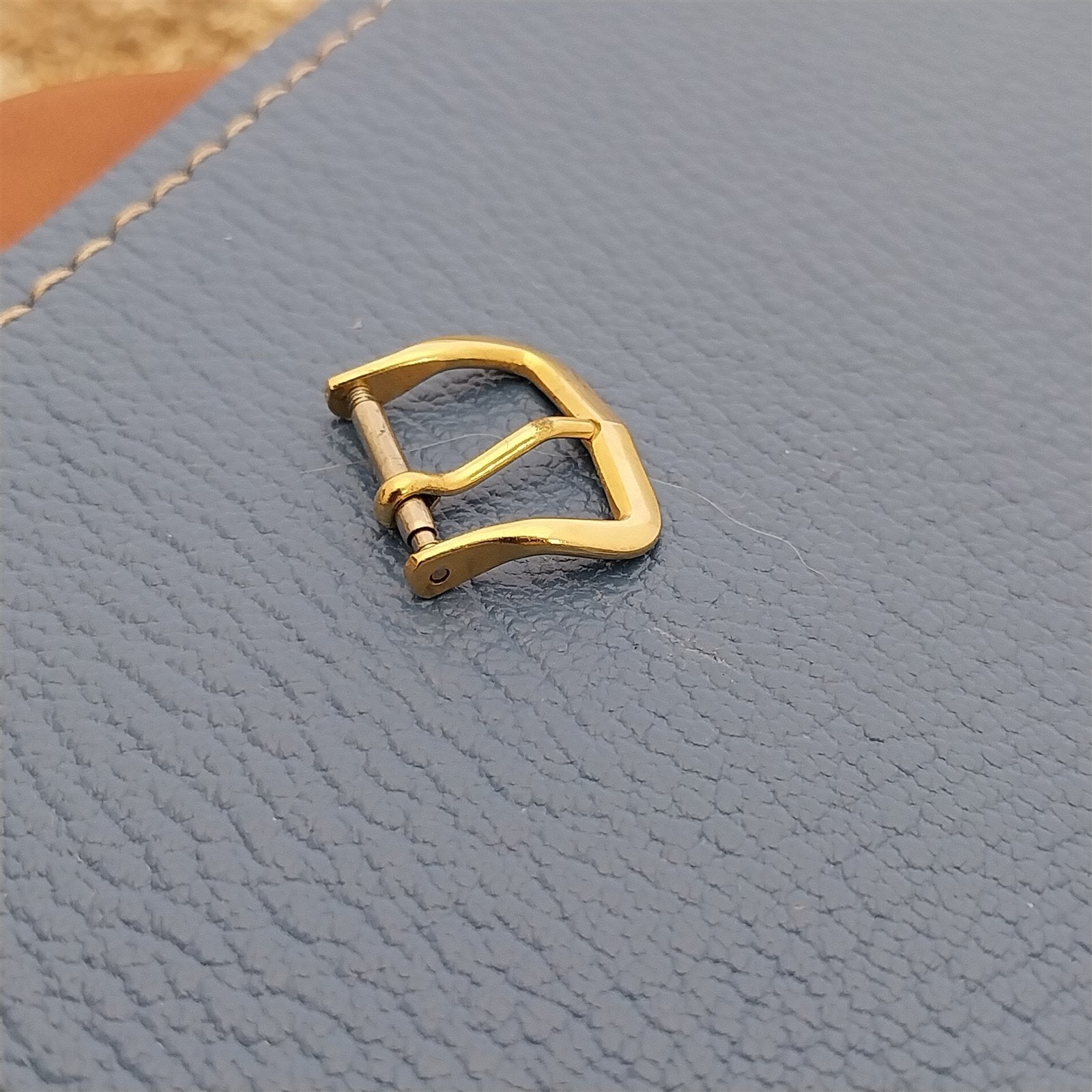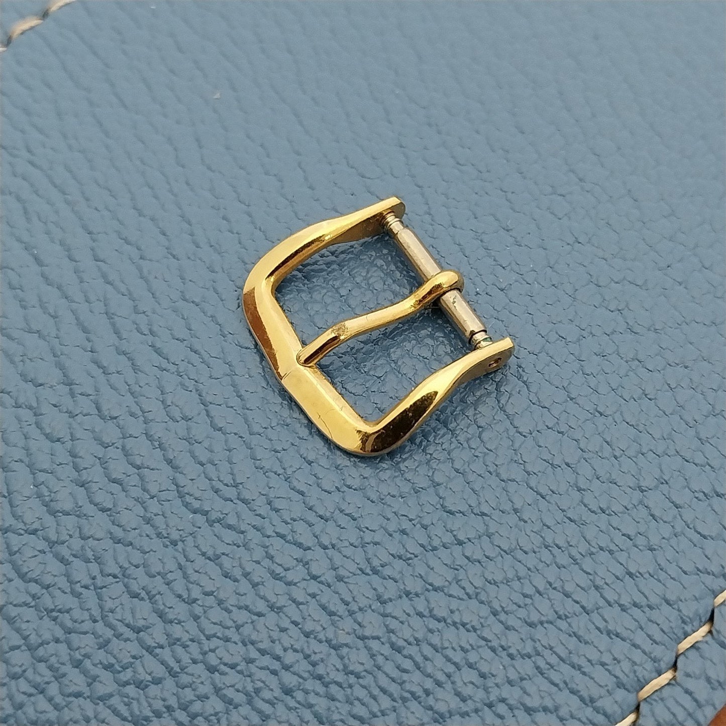 - NOS unused new old-stock yellow gold-tone watch strap buckle.