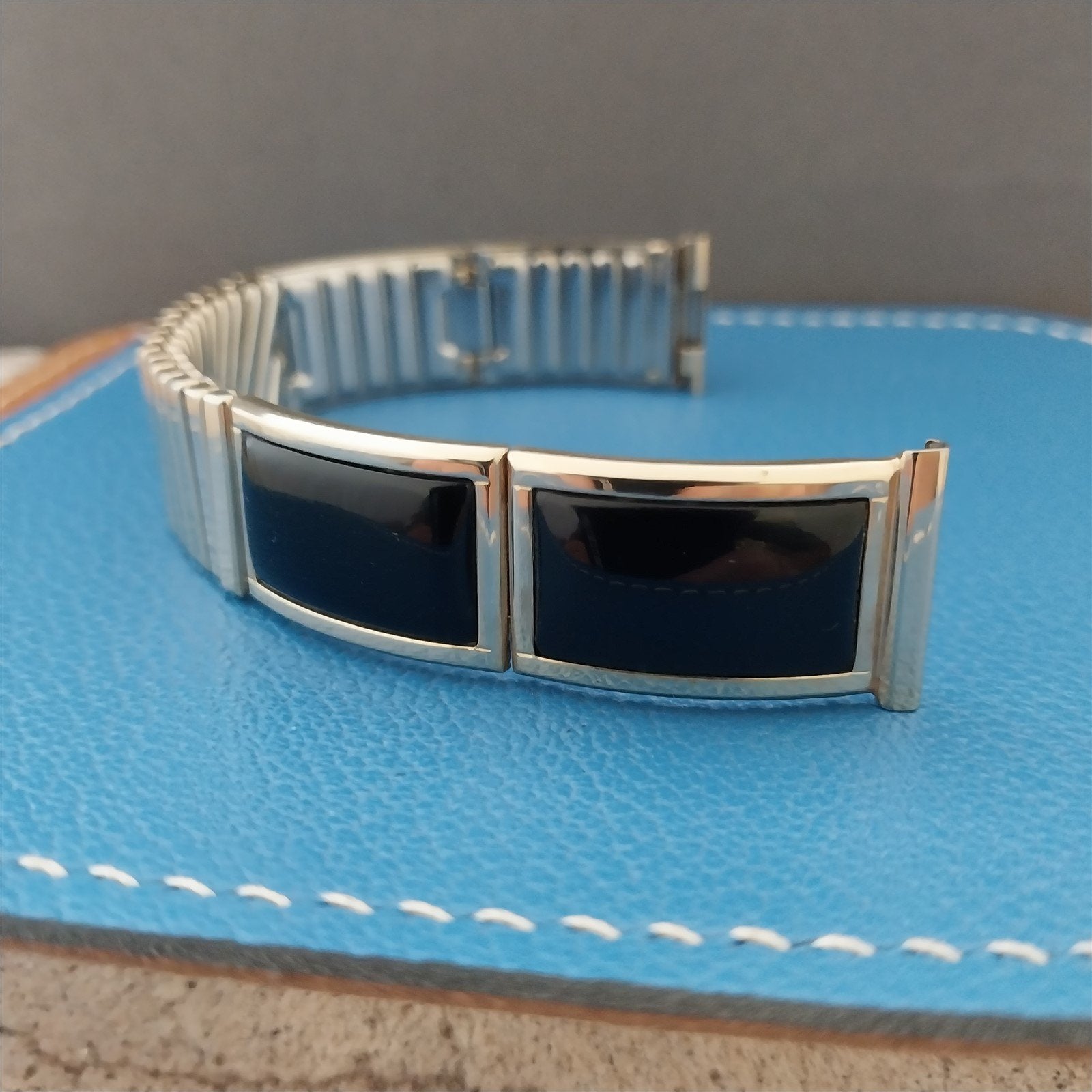 - NOS unused new old stock 1958 Speidel Maraca 10kt yellow gold-filled & black plastic combination expansion watch bracelet.