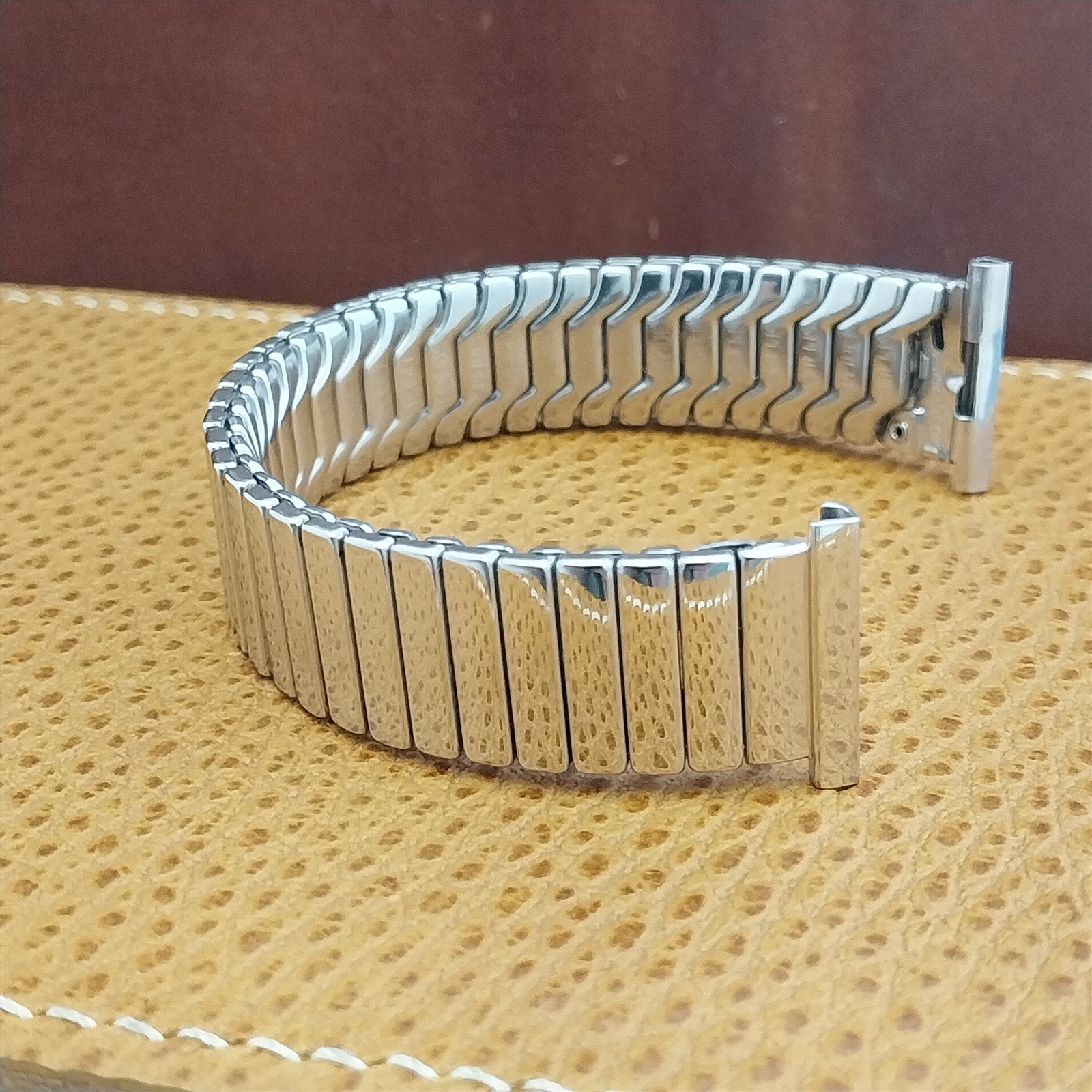 - NOS unused 1950s Speidel Castile white gold-filled scissor-expansion watch bracelet.