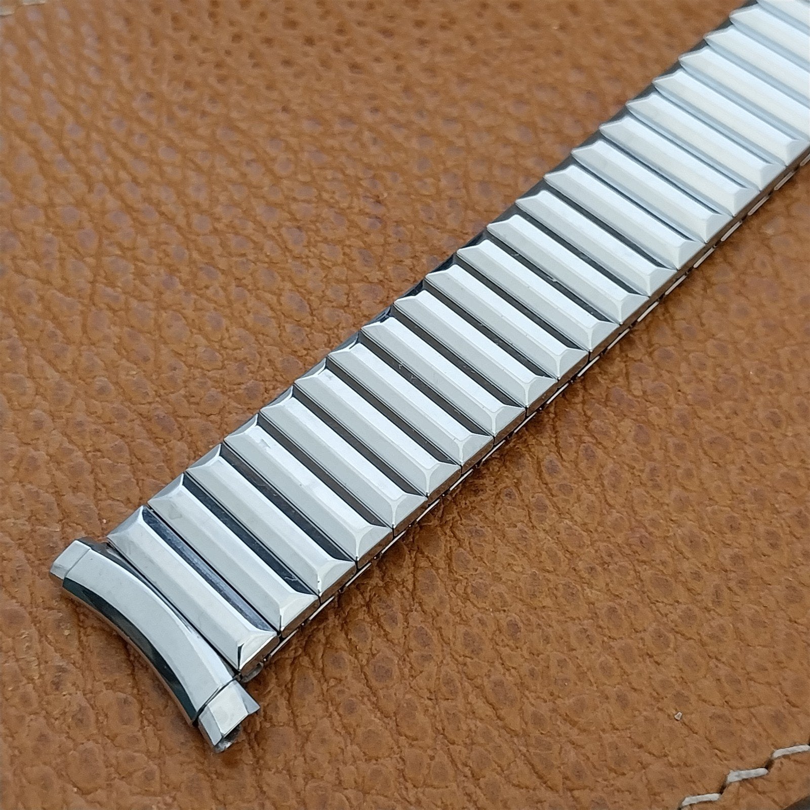 - NOS unused 1970s old-stock Speidel Fullback stainless steel expansion watch bracelet.