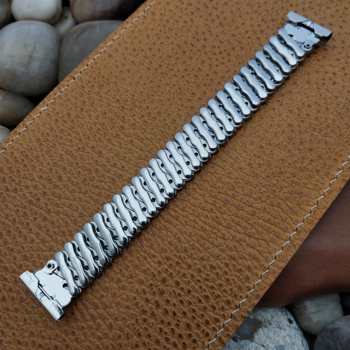- NOS 1950s-1960s old-stock Bellavance stainless steel scissor-expansion watch bracelet.