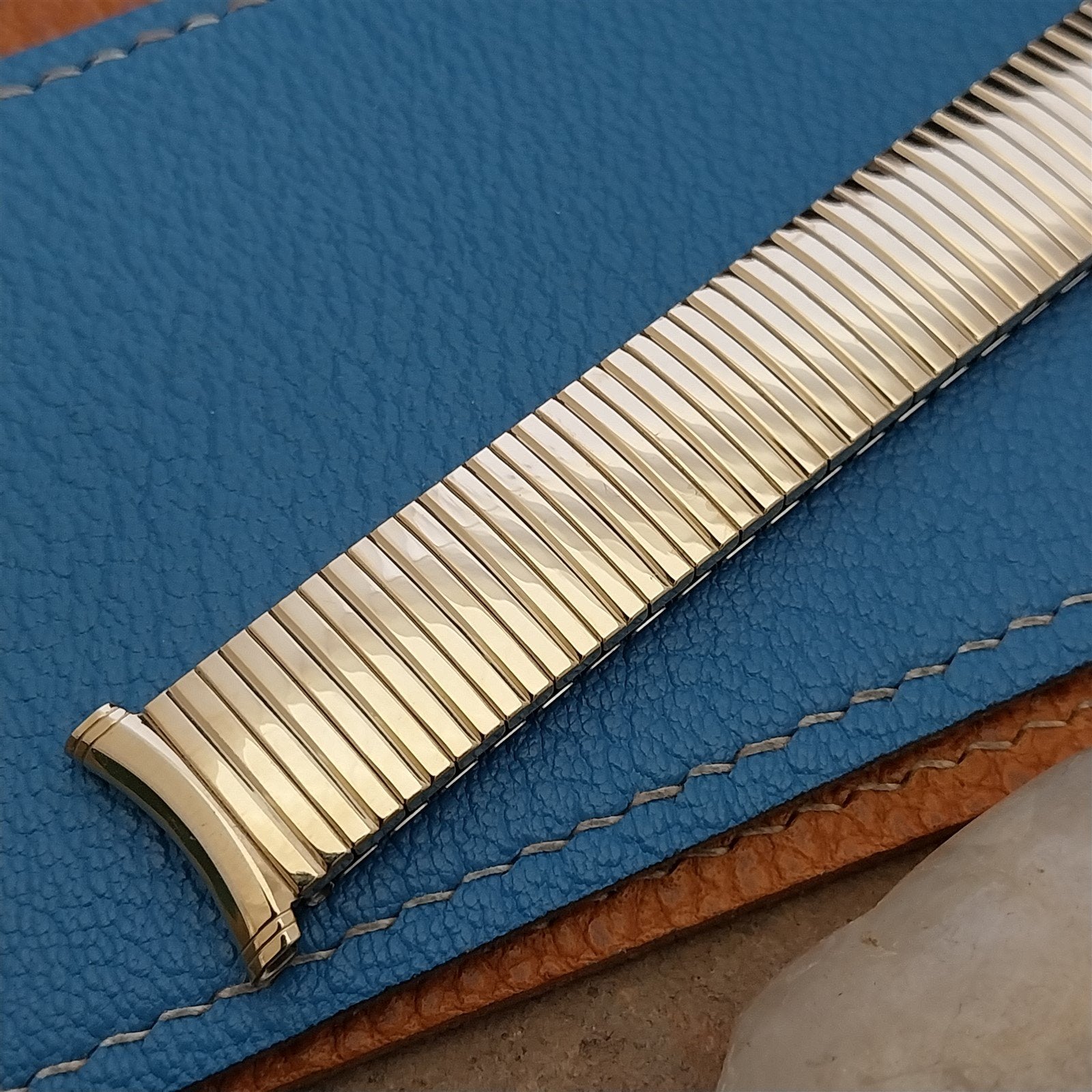 - NOS unused 1960s-1970s old-stock Speidel curve top Linesman 10K yellow gold-filled expansion watch bracelet.