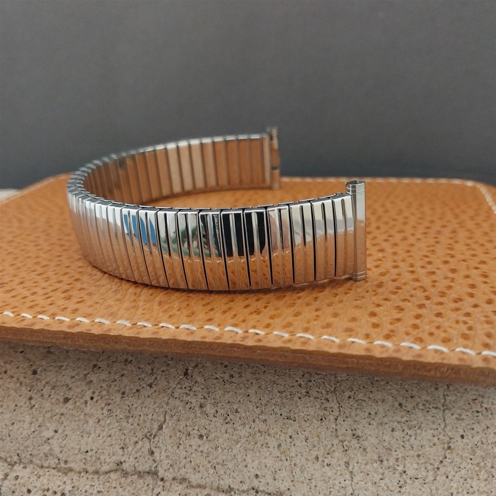 - NOS unused old-stock 1967 Speidel Linesman stainless steel expansion watch bracelet.