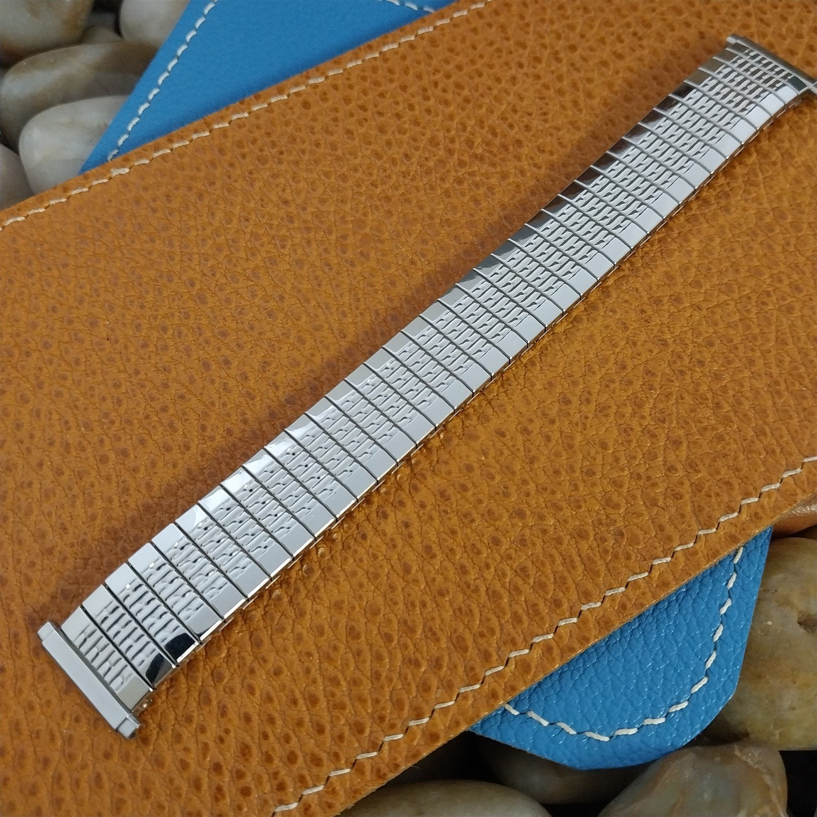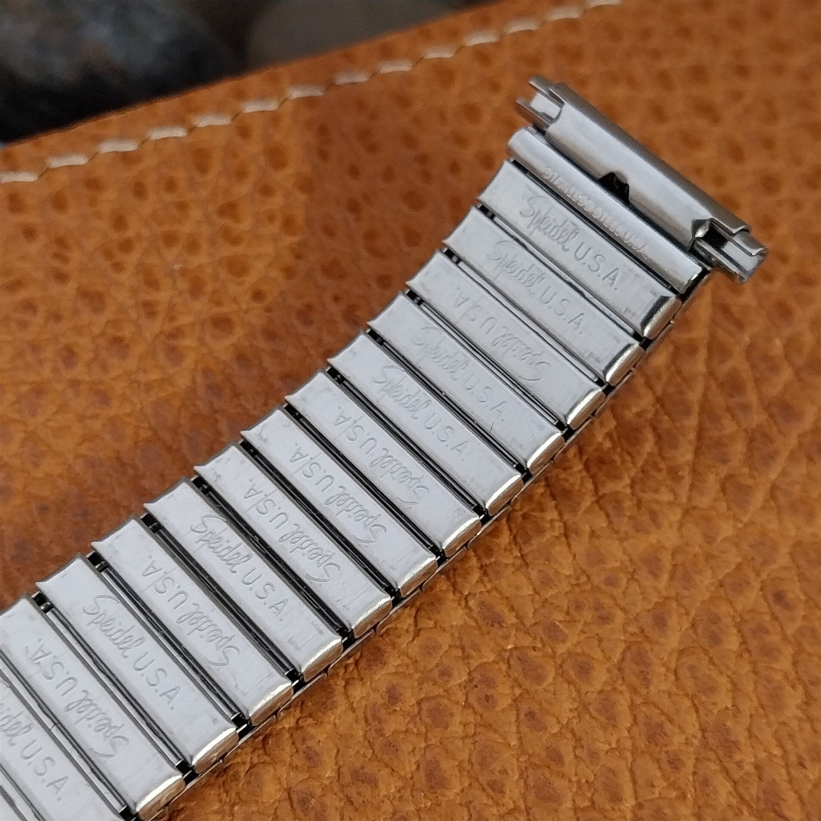 - NOS 1970s new old-stock Speidel beads of rice pattern stainless steel expansion watch bracelet.