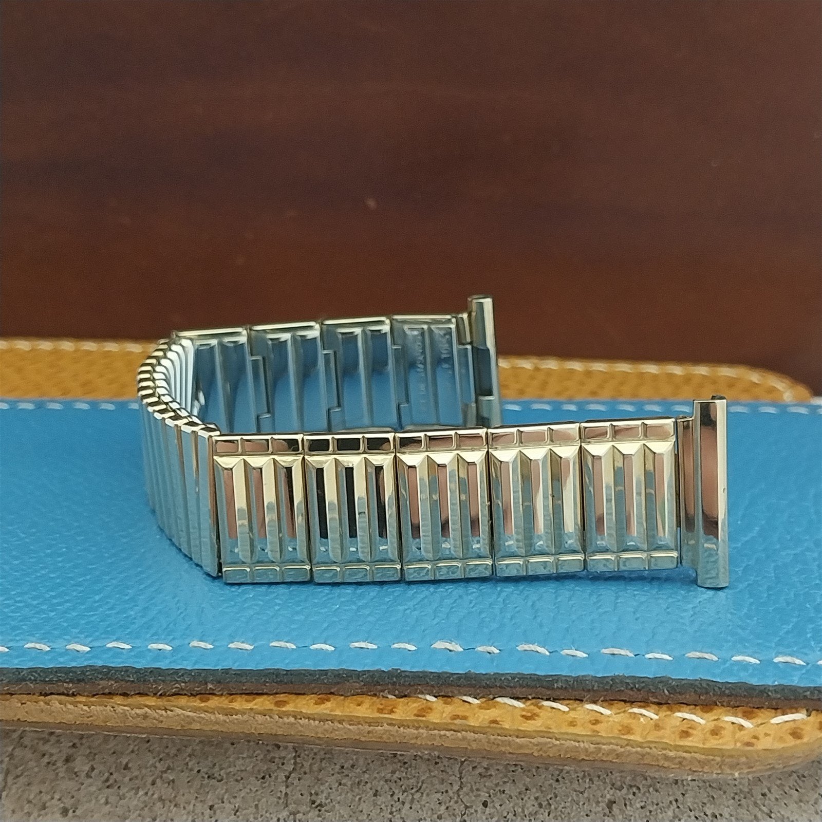 - NOS unused 1957 Speidel Fort Knox yellow gold-filled center scissor-expansion watch bracelet.