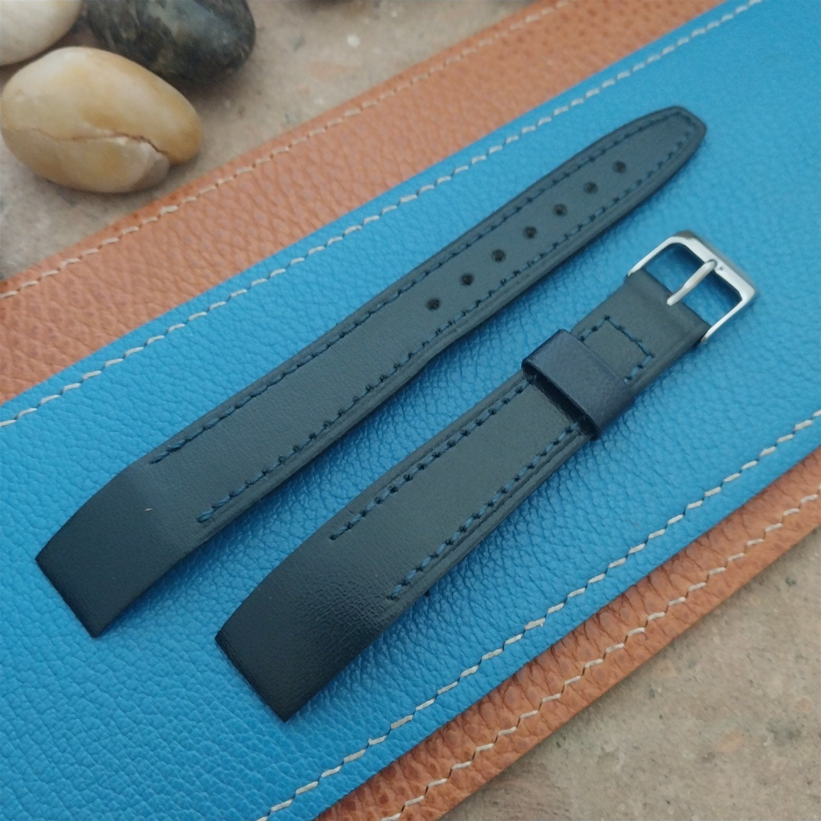 - NOS unused old-stock vintage Hirsch Austria dark blue leather watch band.