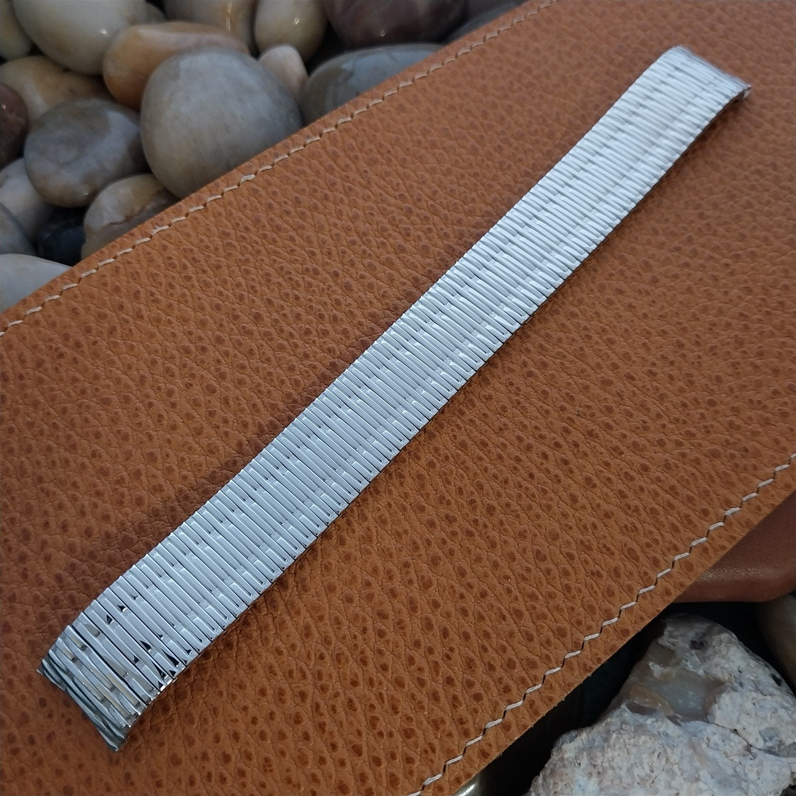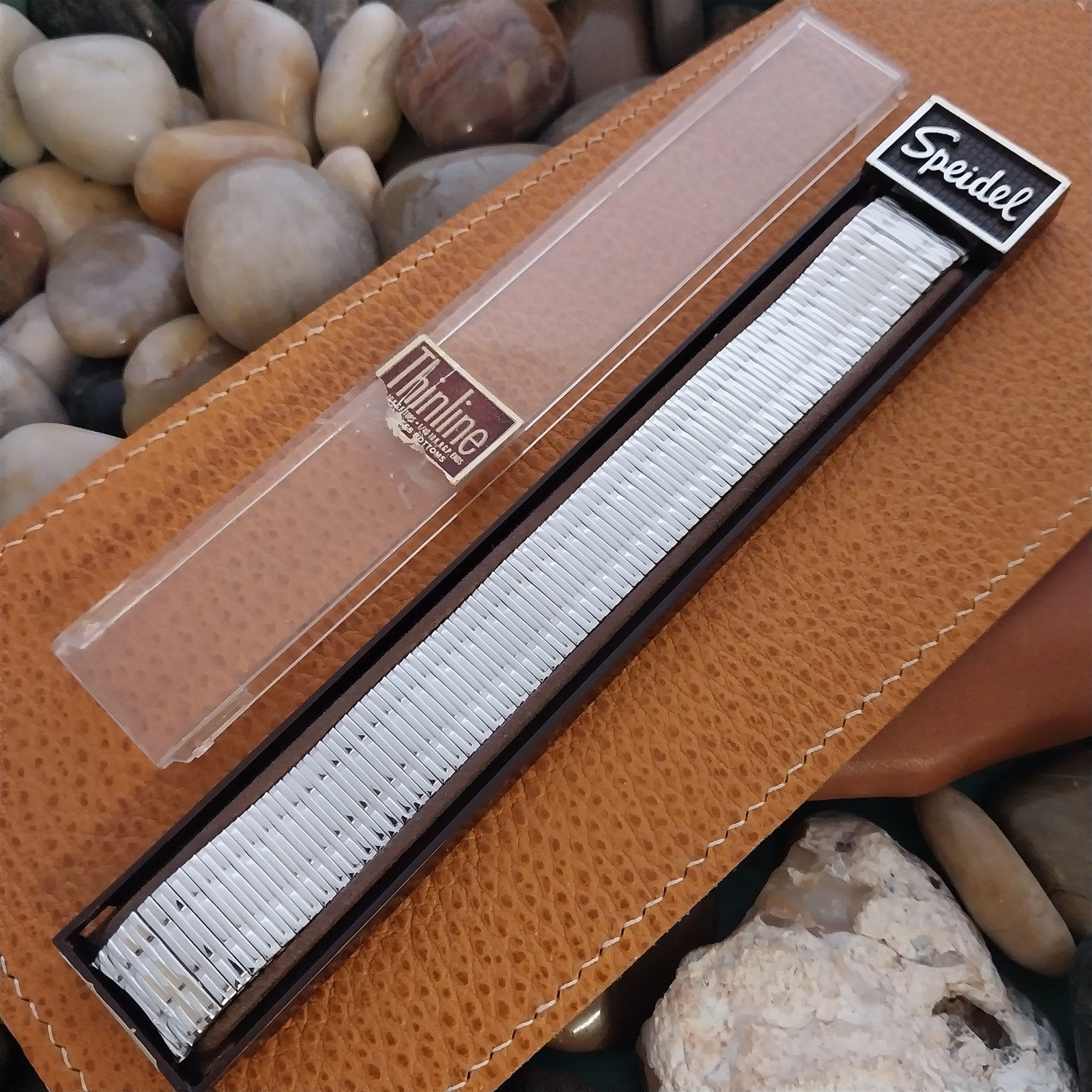 - NOS unused 1970s old-stock Speidel 1/20 10k white gold-filled Thinline Twisto-o-Flex expansion watch bracelet.