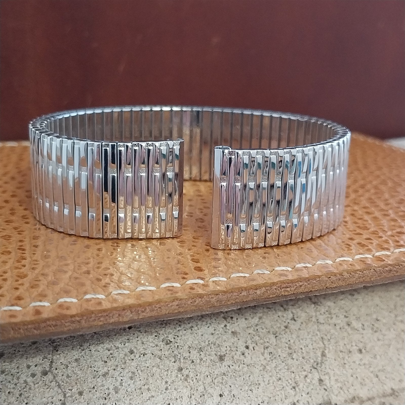 - NOS unused 1970s old-stock Speidel 1/20 10k white gold-filled Thinline Twist-O-Flex expansion watch bracelet.