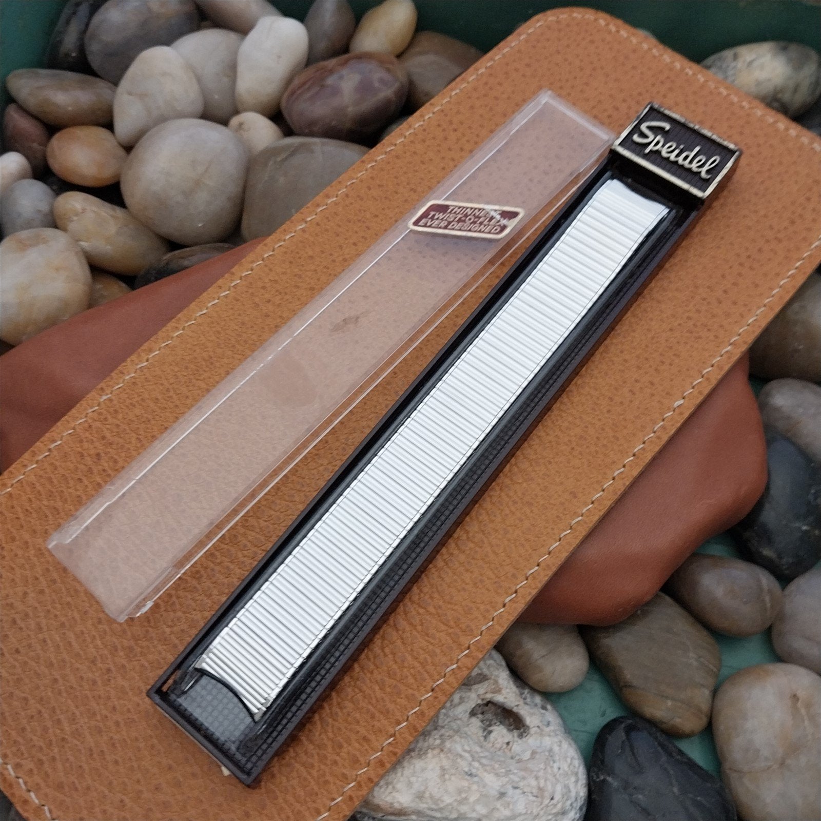 - NOS unused old-stock 1970s Speidel 1/20 10k white gold-filled Thinline expansion watch bracelet.