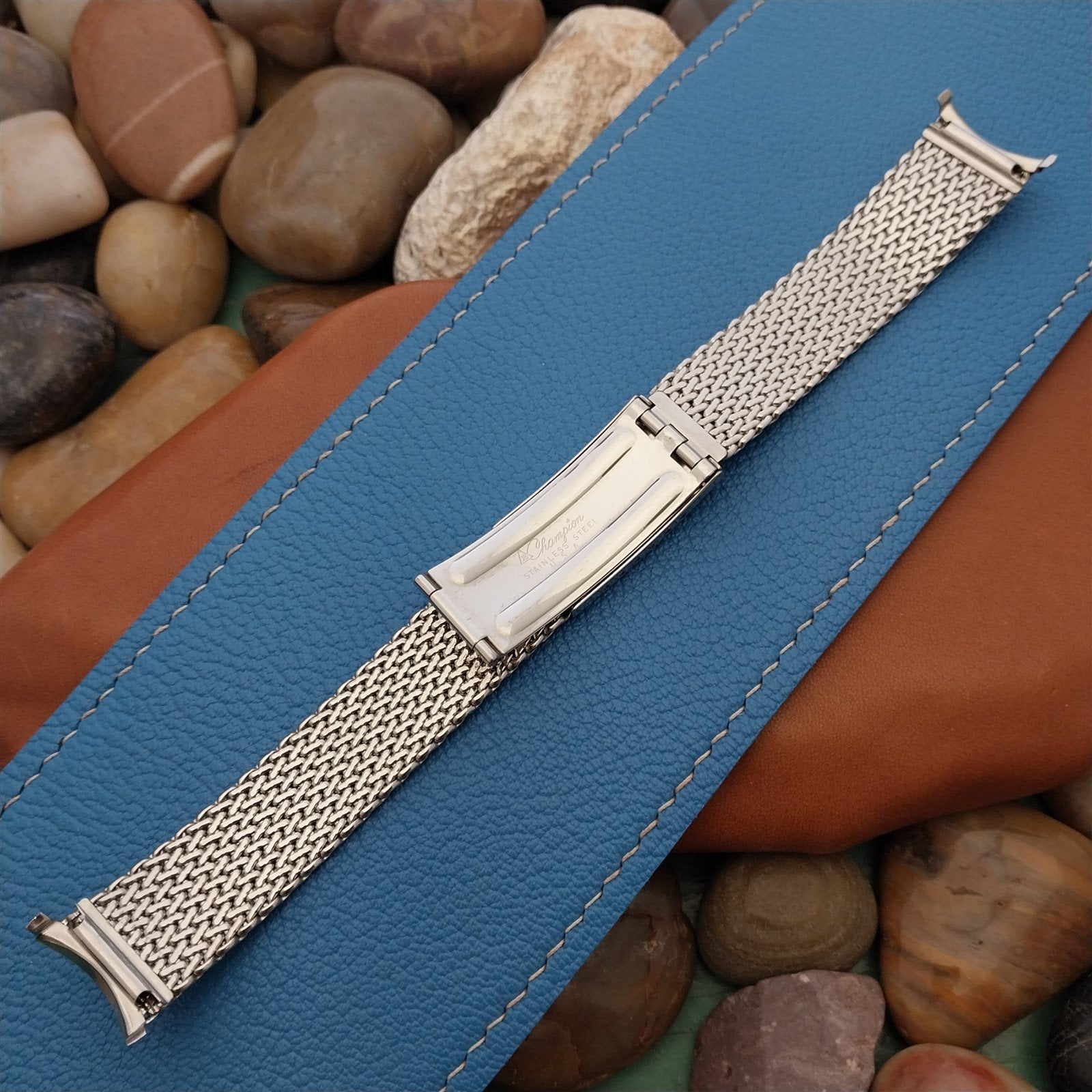 - NOS unused 1960s-1970s old stock JB Champion stainless steel mesh deployment watch bracelet.
