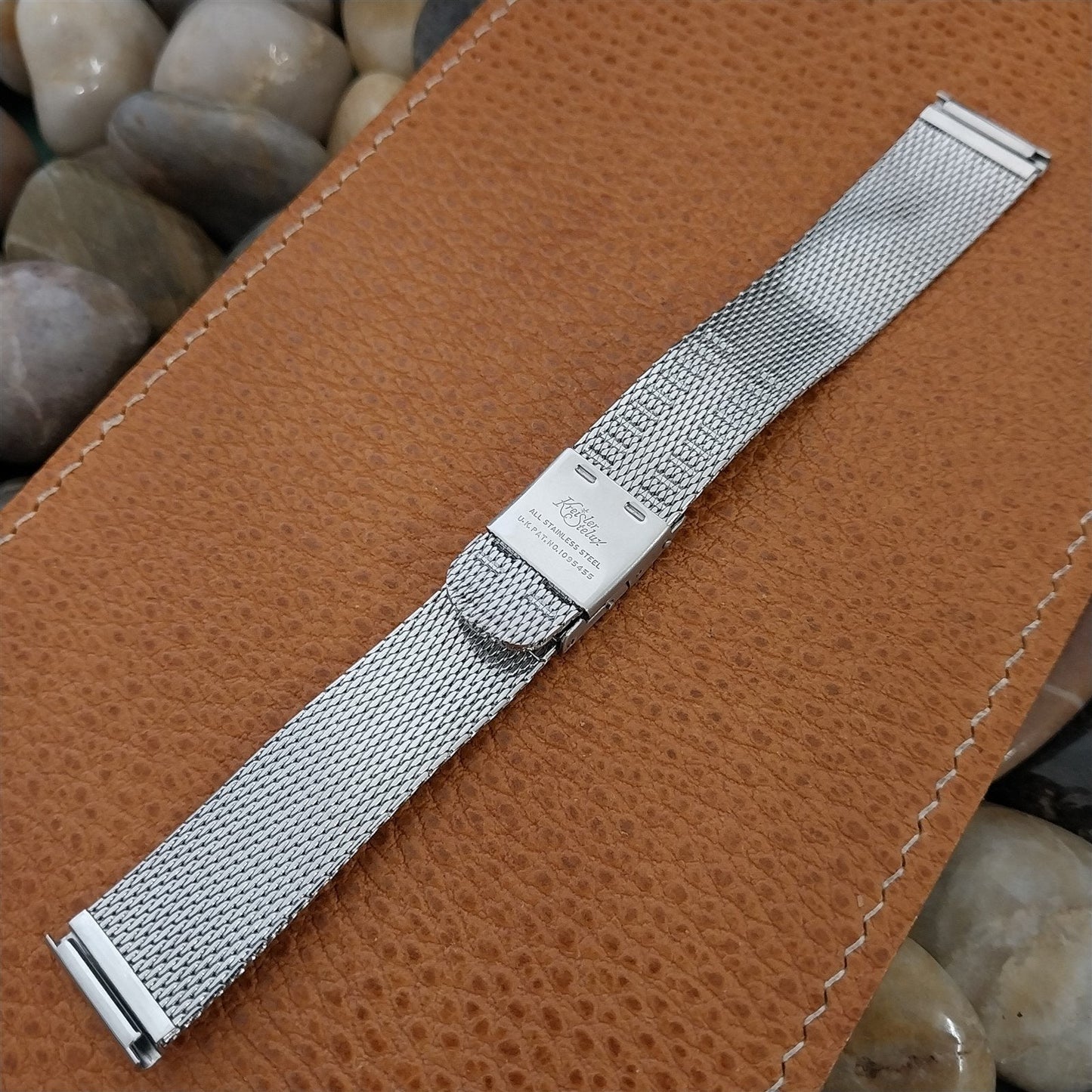 - NOS unused 1960s-1970s old-stock Stelux stainless steel mesh watch bracelet.