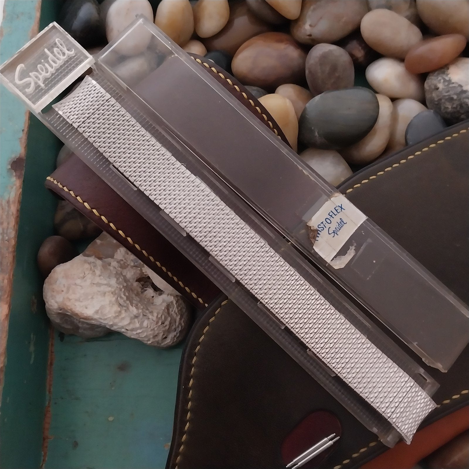 - NOS unused 1970s old-stock Speidel stainless steel Thinline expansion watch bracelet.