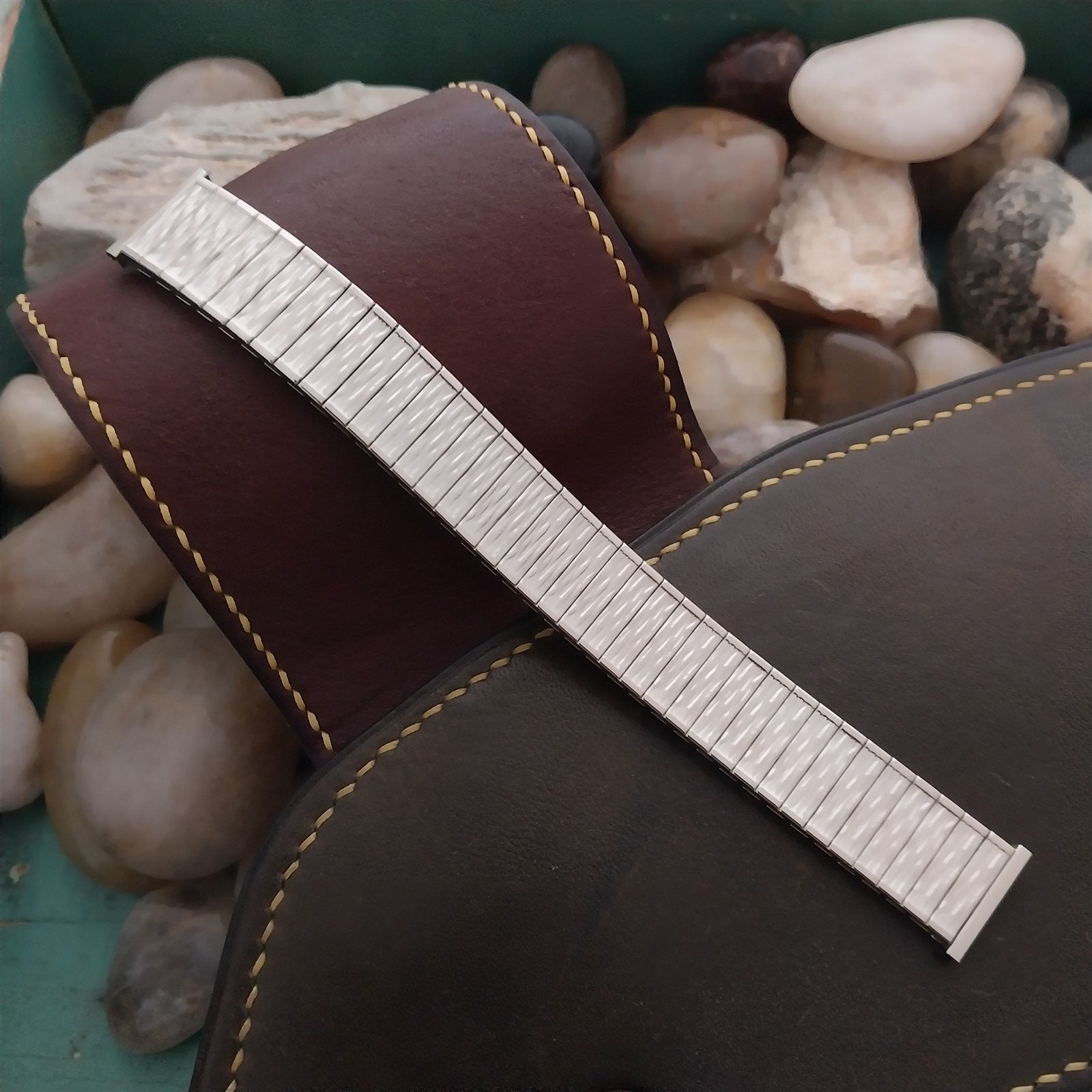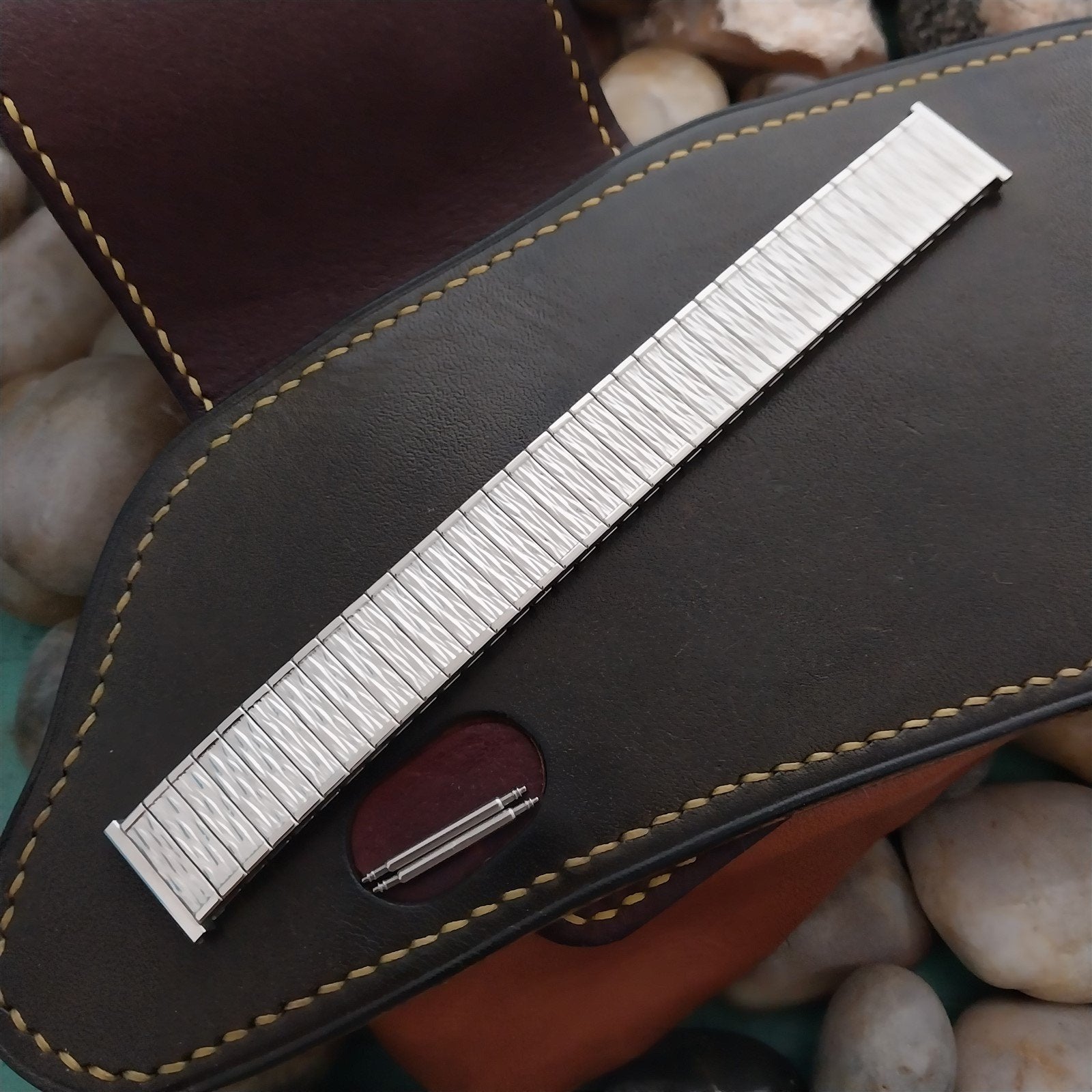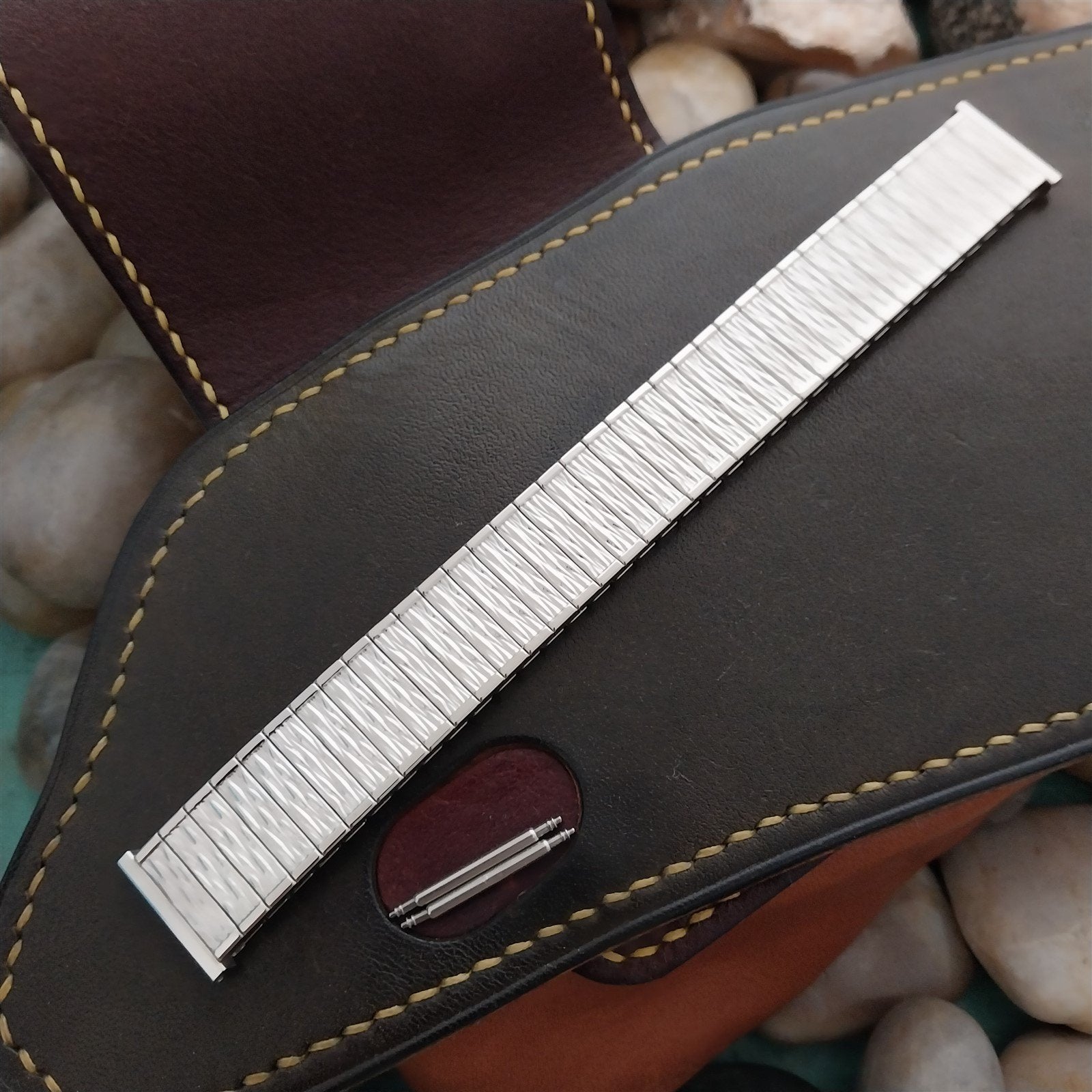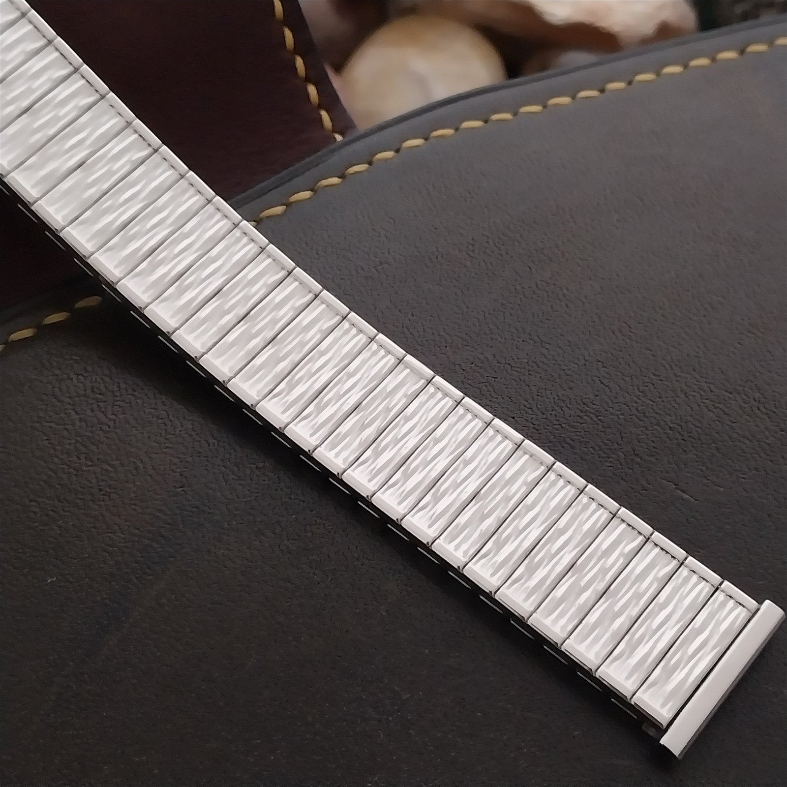 - NOS unused 1970s old-stock Speidel Valencia stainless steel expansion watch bracelet.