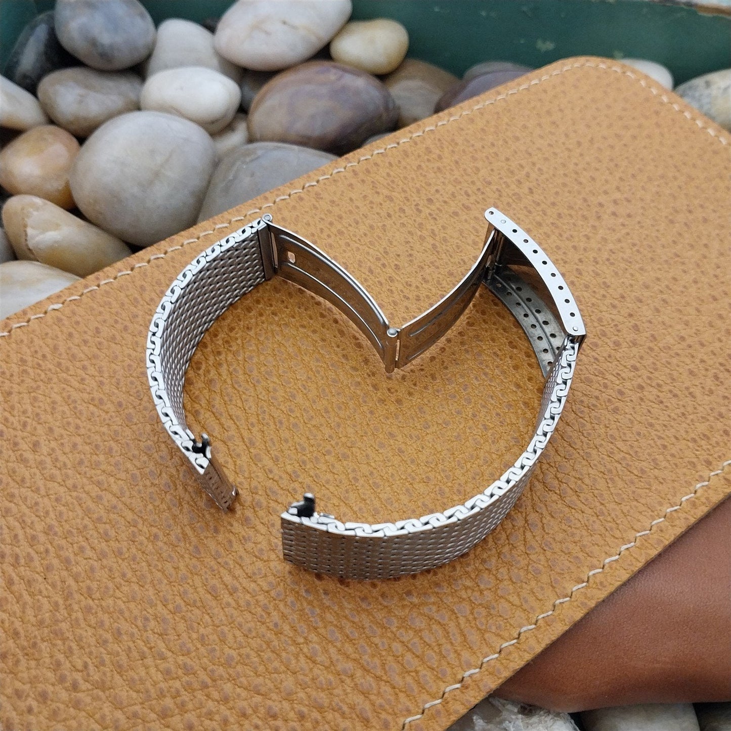 - NOS unused 1960s-1970s old-stock Stelux stainless steel mesh deployment watch bracelet.