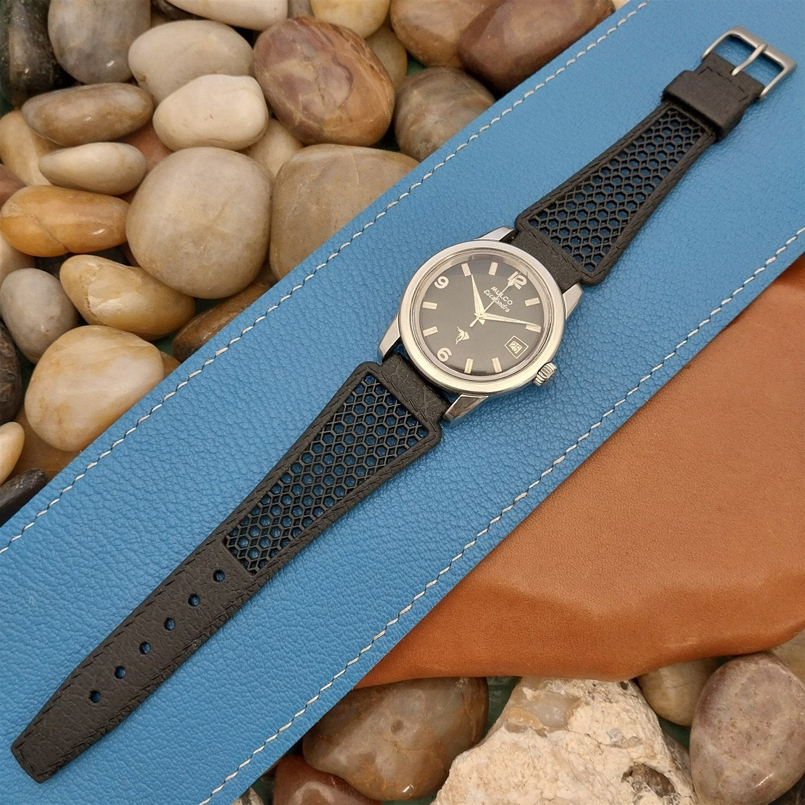 18mm 1970s Skindiver Black Golay Swiss Vintage Watch Band Matte Stainless Buckle