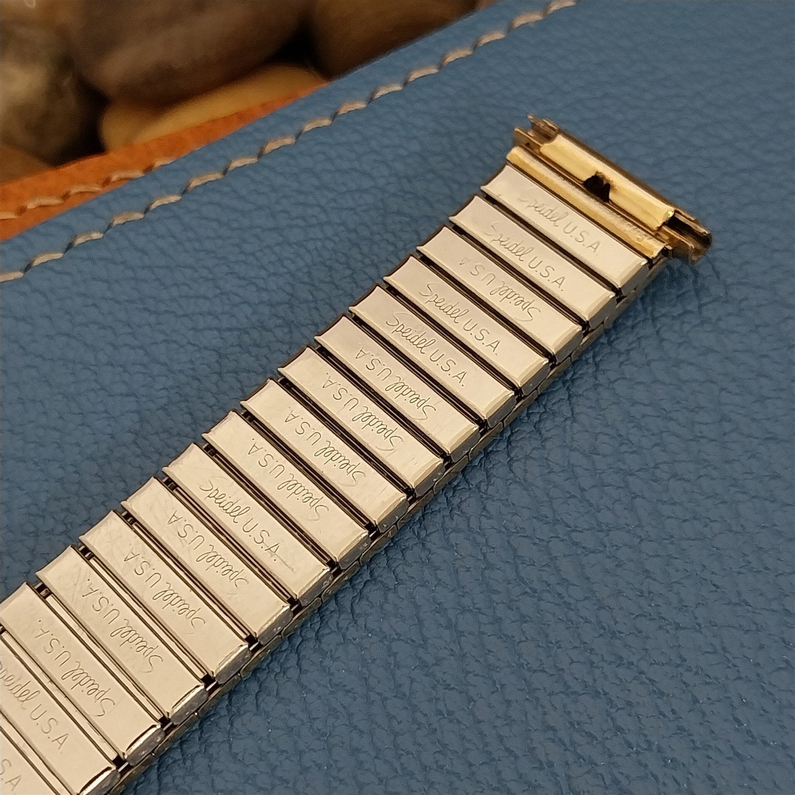 - NOS unused 1970s old-stock Speidel Tribune yellow rolled gold plate Twist-O-Flex expansion watch bracelet.