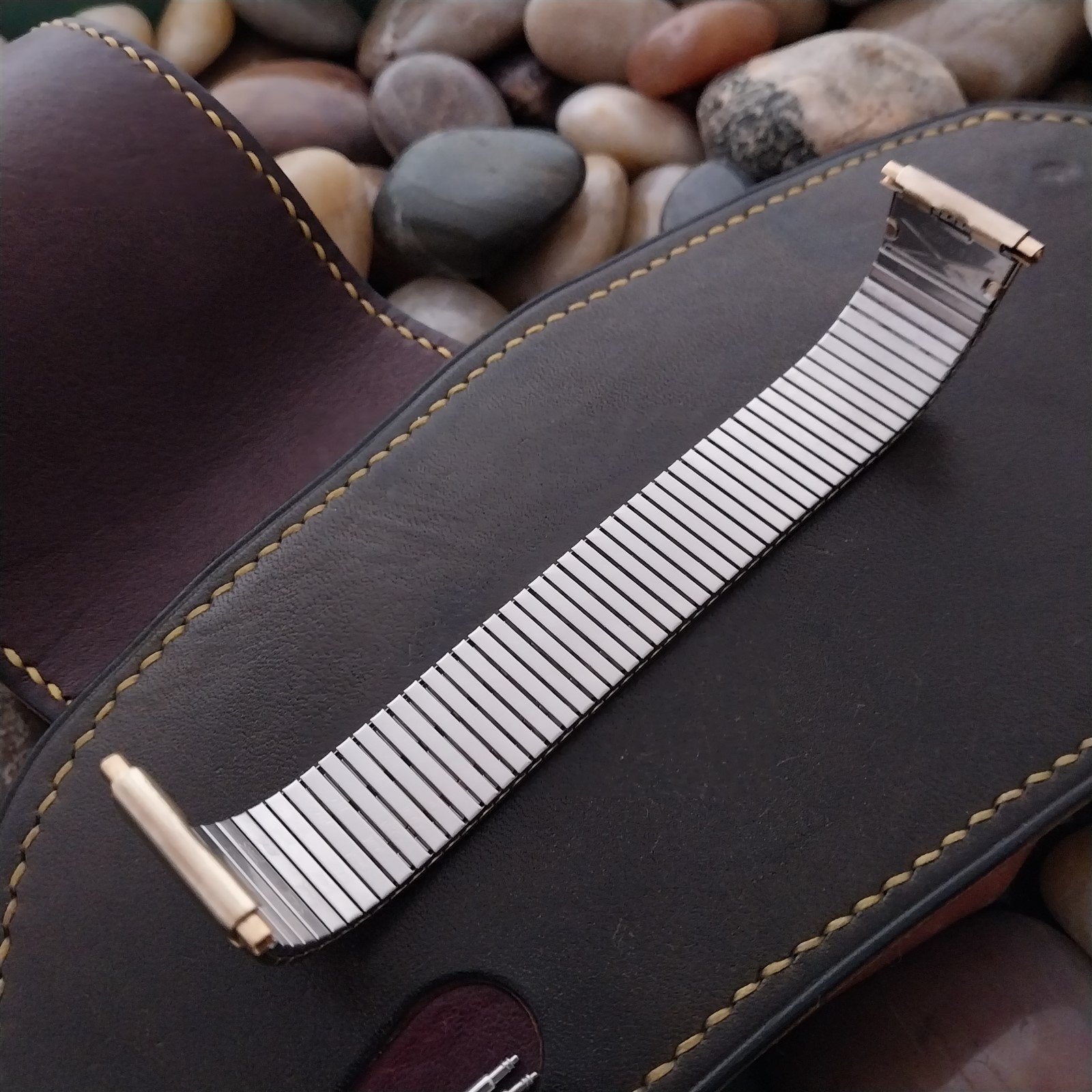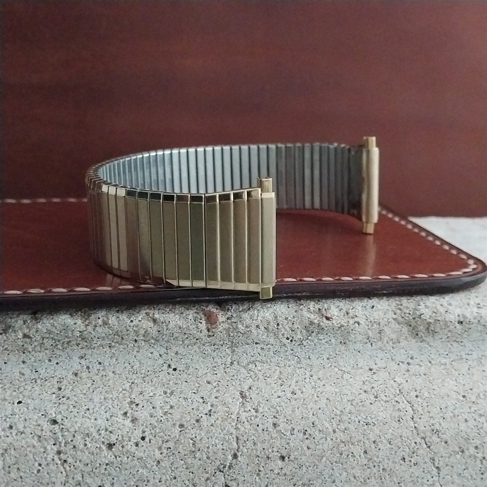 - NOS unused old-stock Speidel yellow gold-tone expansion watch bracelet.