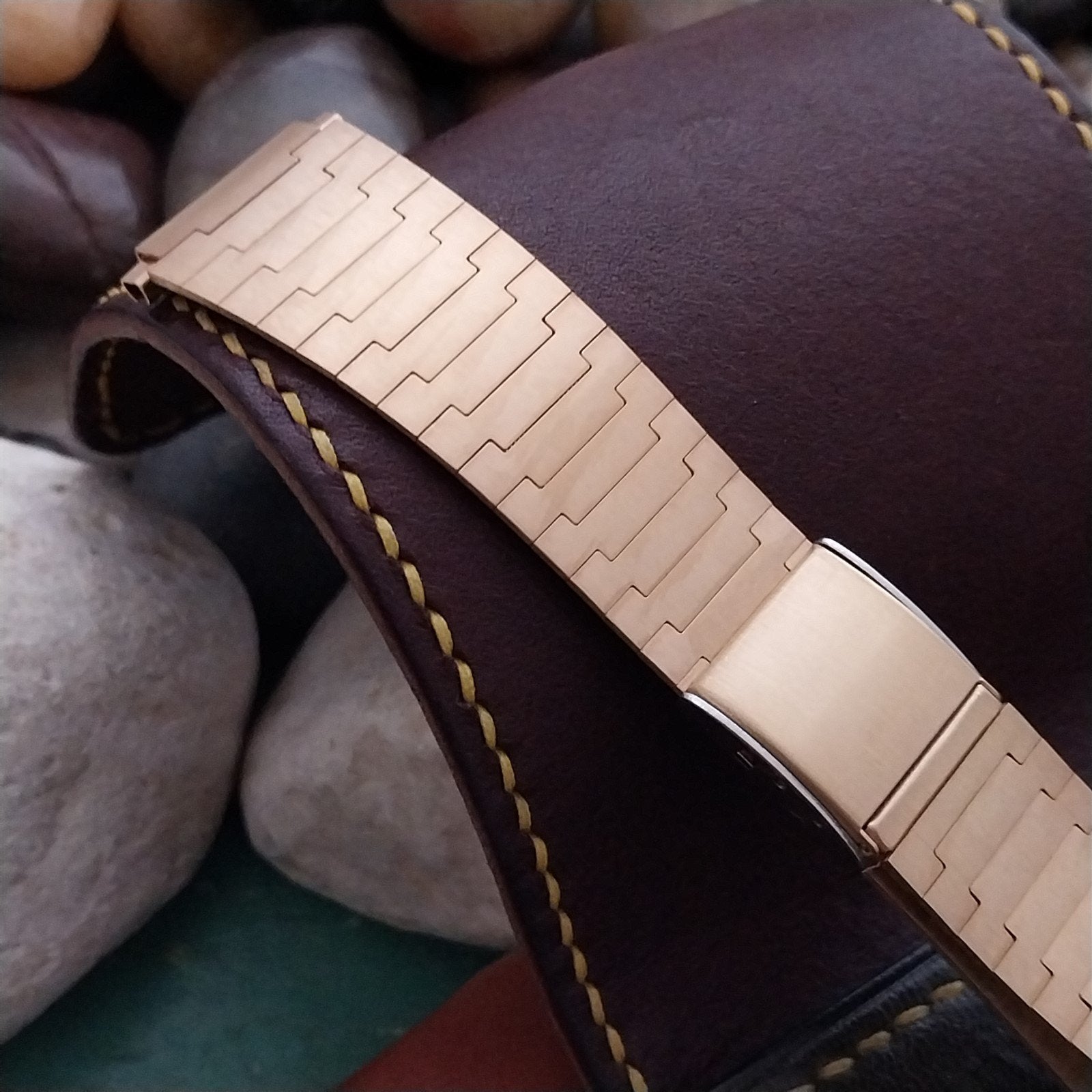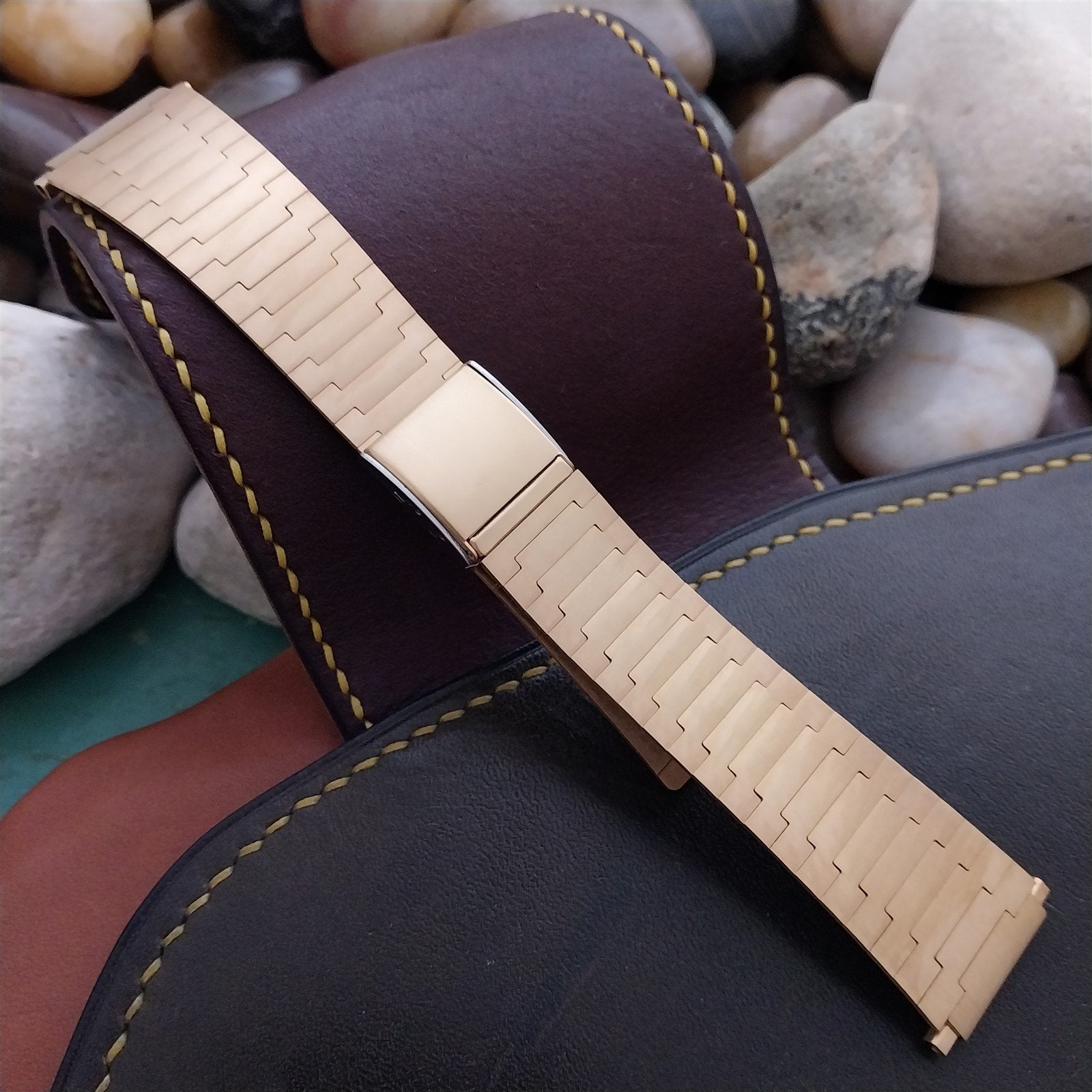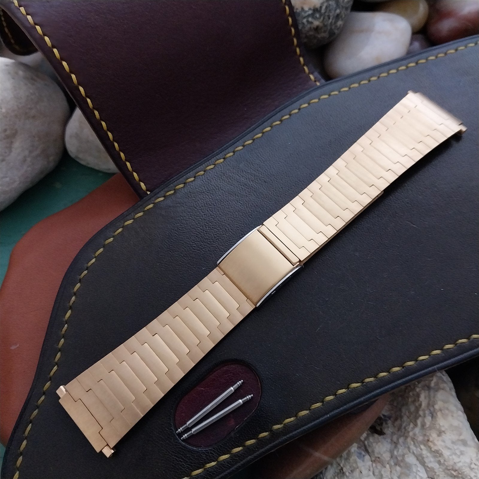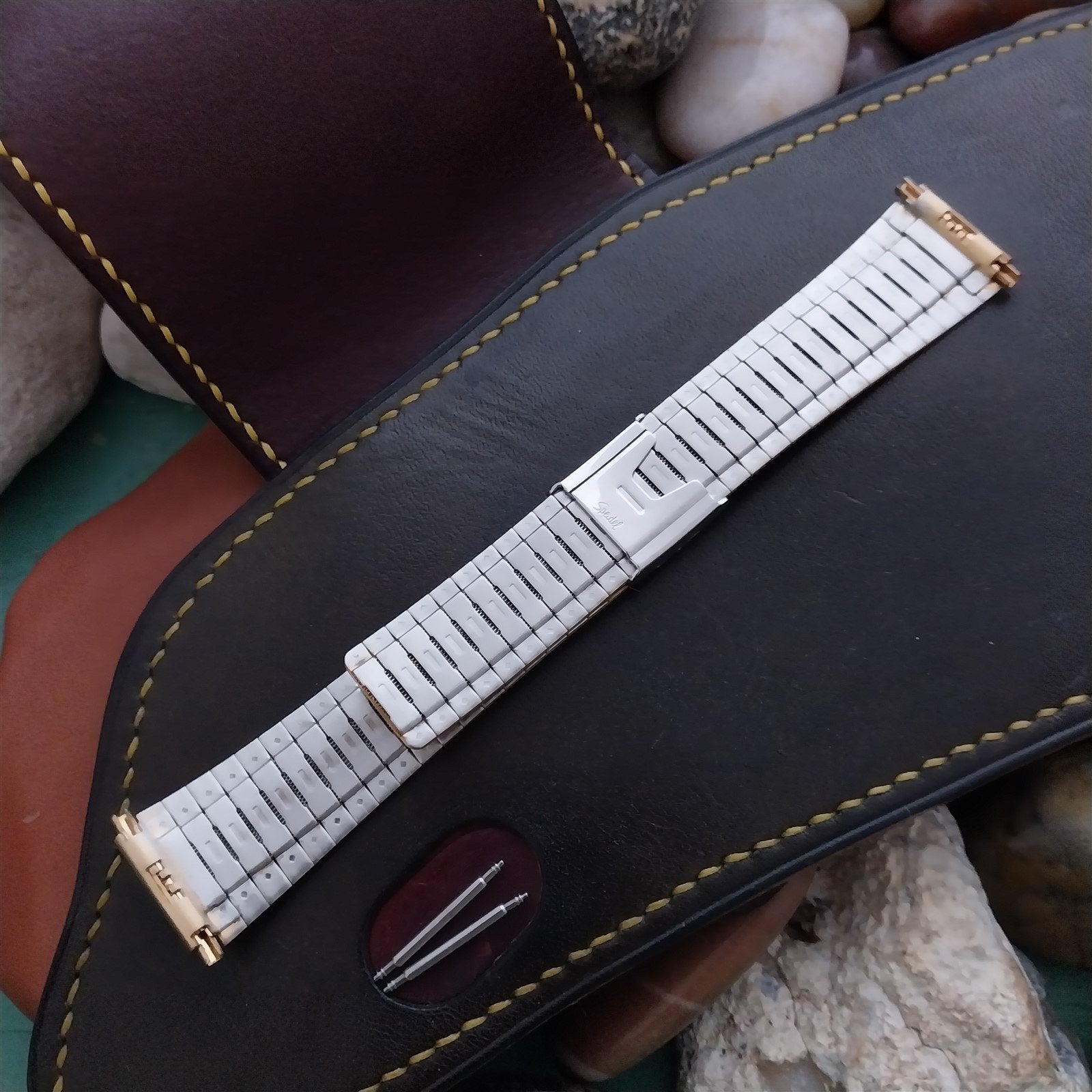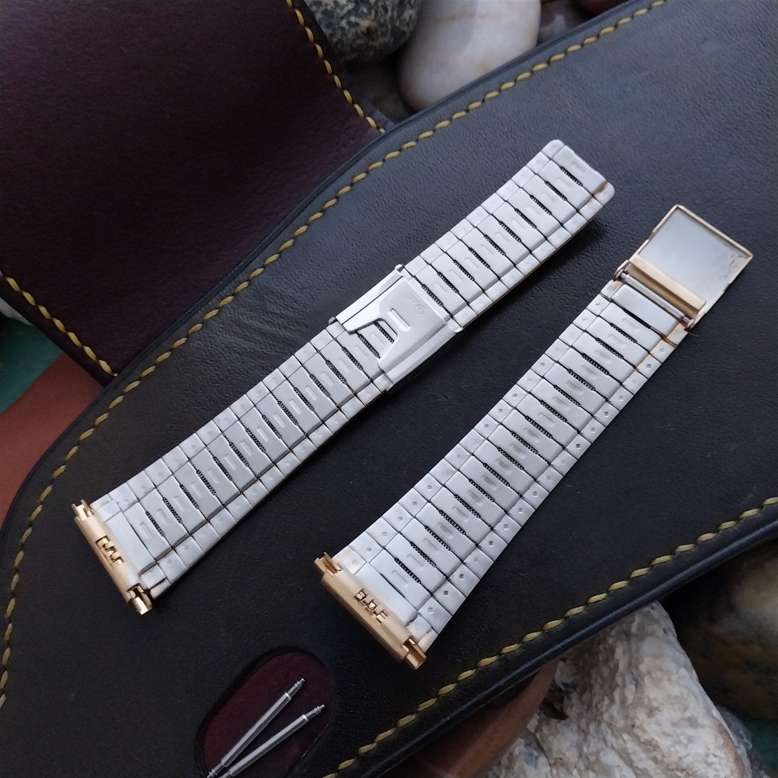 - NOS unused old-stock Speidel yellow gold-tone 2-piece watch bracelet.