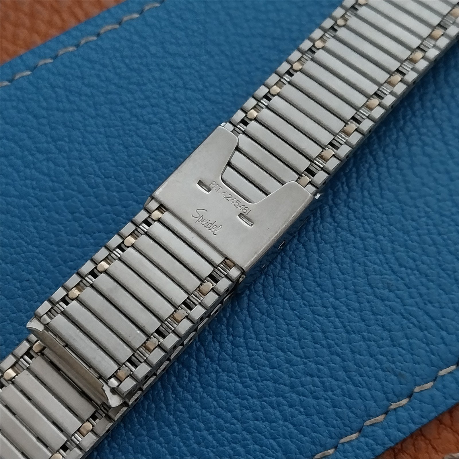- NOS unused old-stock Speidel yellow gold-tone 2-piece watch bracelet.