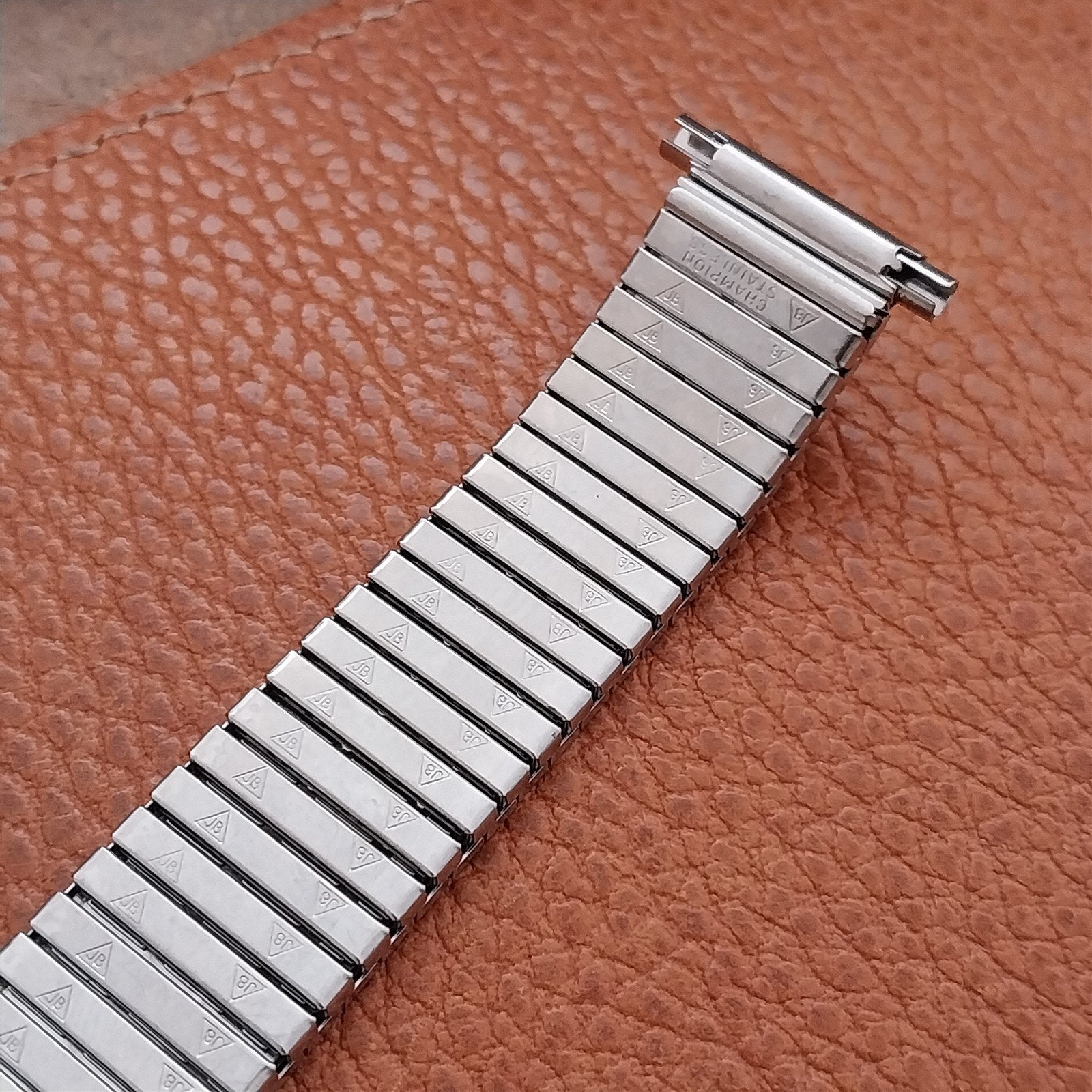 - NOS unused 1970s old-stock brushed stainless steel JB Champion expansion watch bracelet.