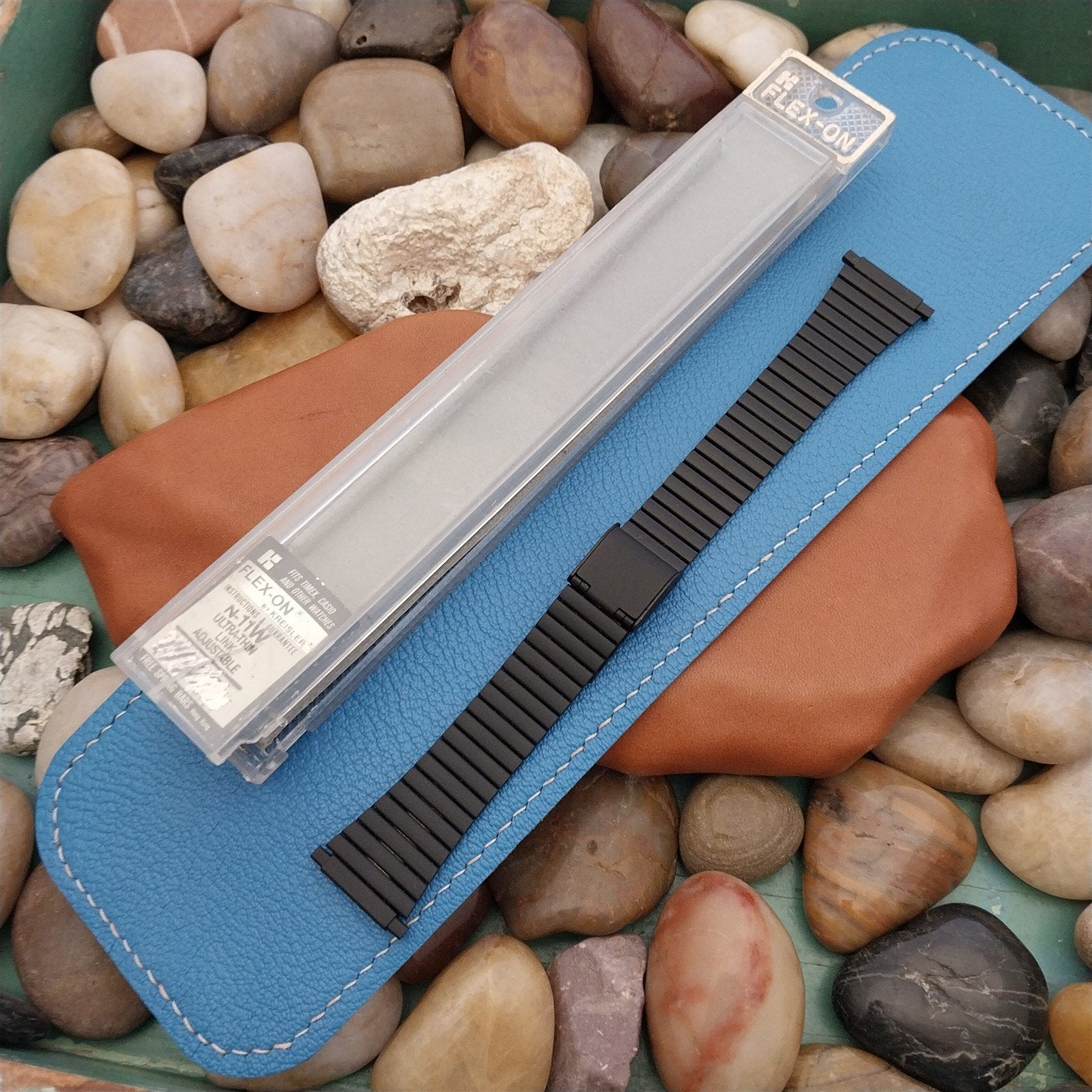 - NOS unused 1970s-1980s old-stock Kreisler black coated stainless steel 2-piece watch bracelet.