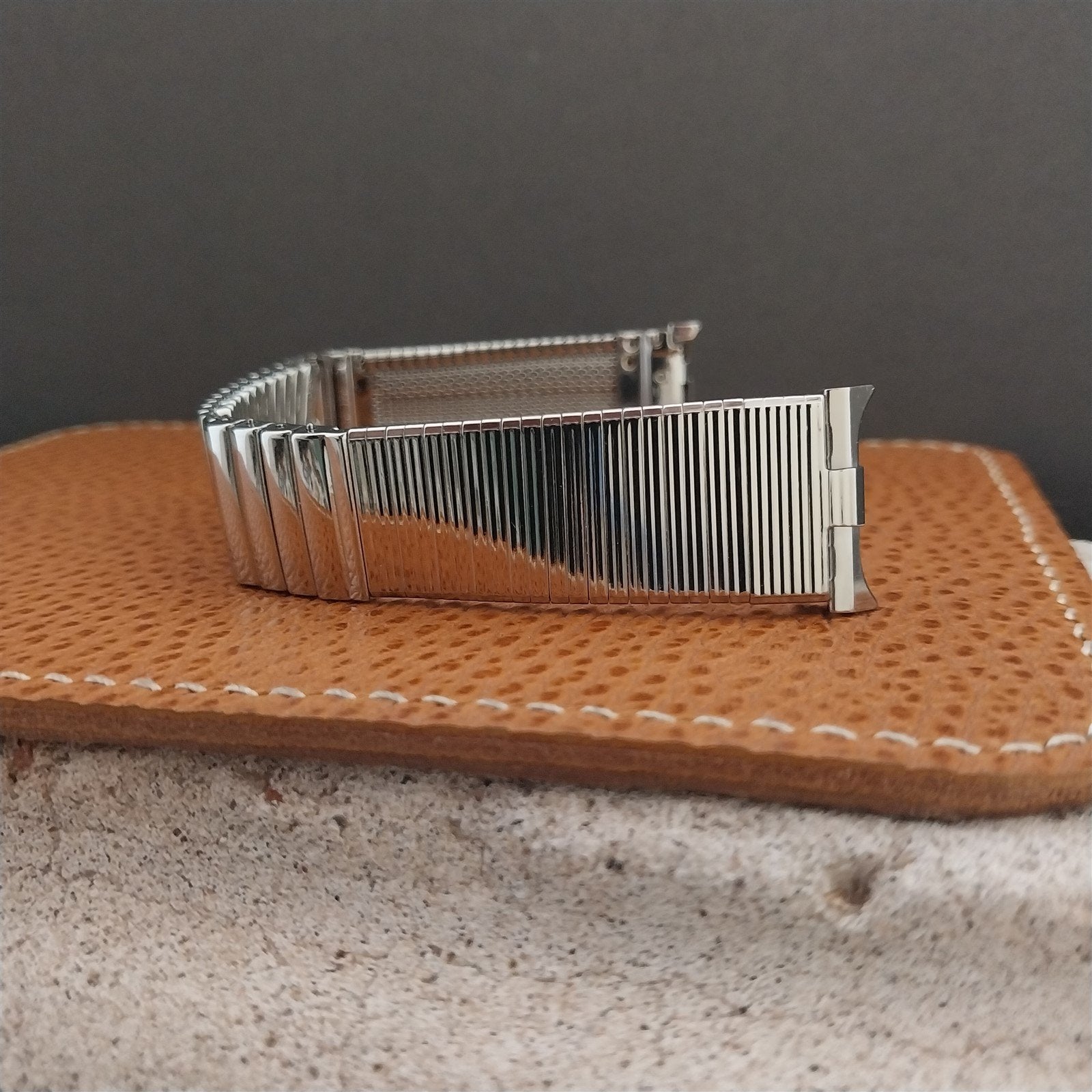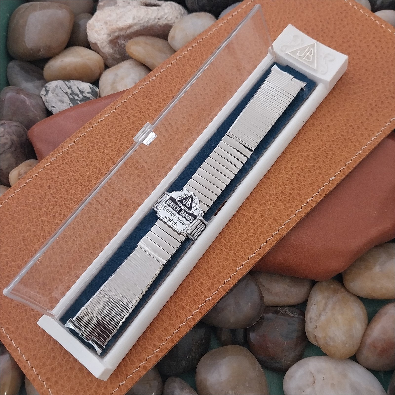 - NOS unused 1960s JB champion stainless steel center scissor-expansion watch bracelet. This is a high-quality, stainless steel made in USA band, out of production. Curved spring-loaded ends fit 19mm 18mm and 17mm.