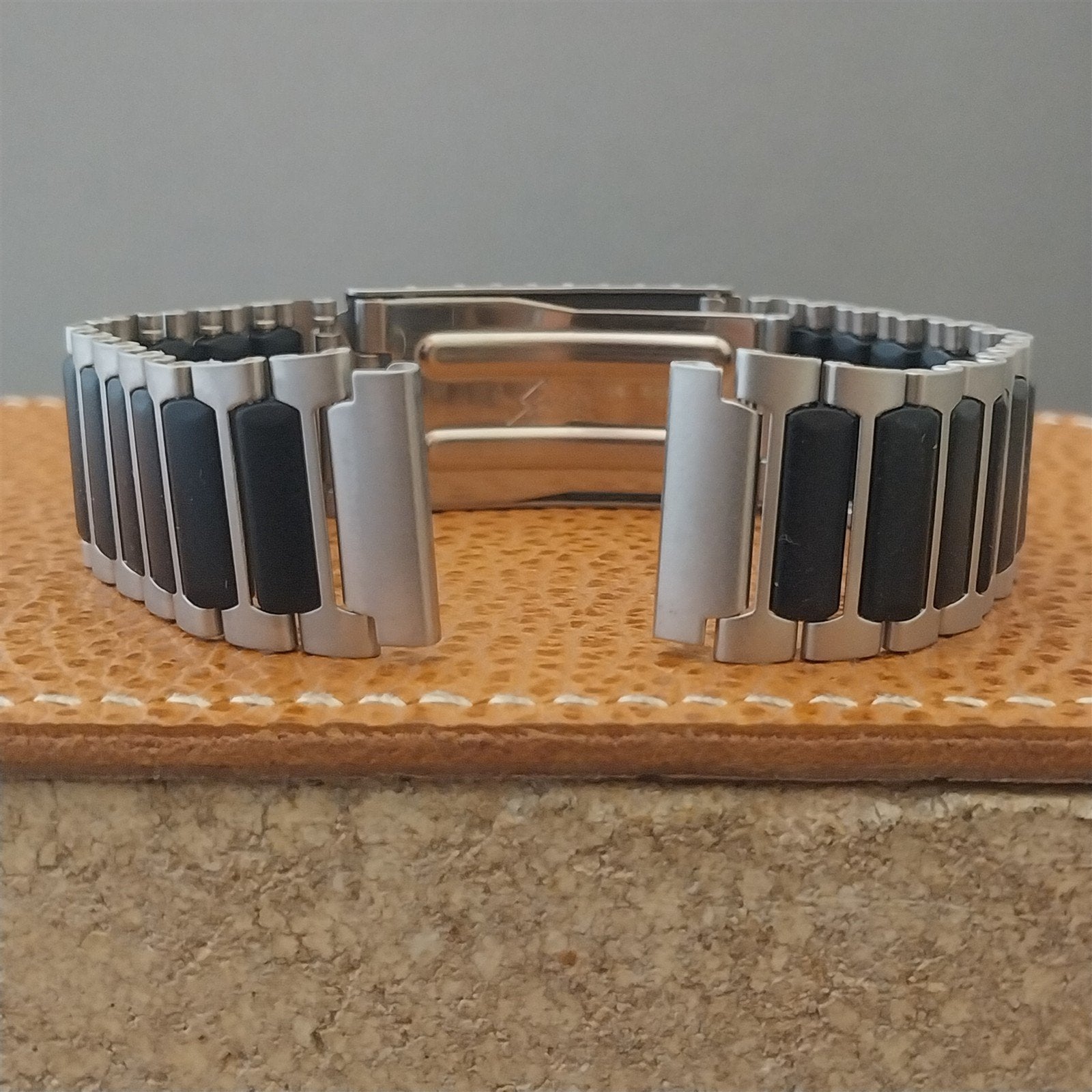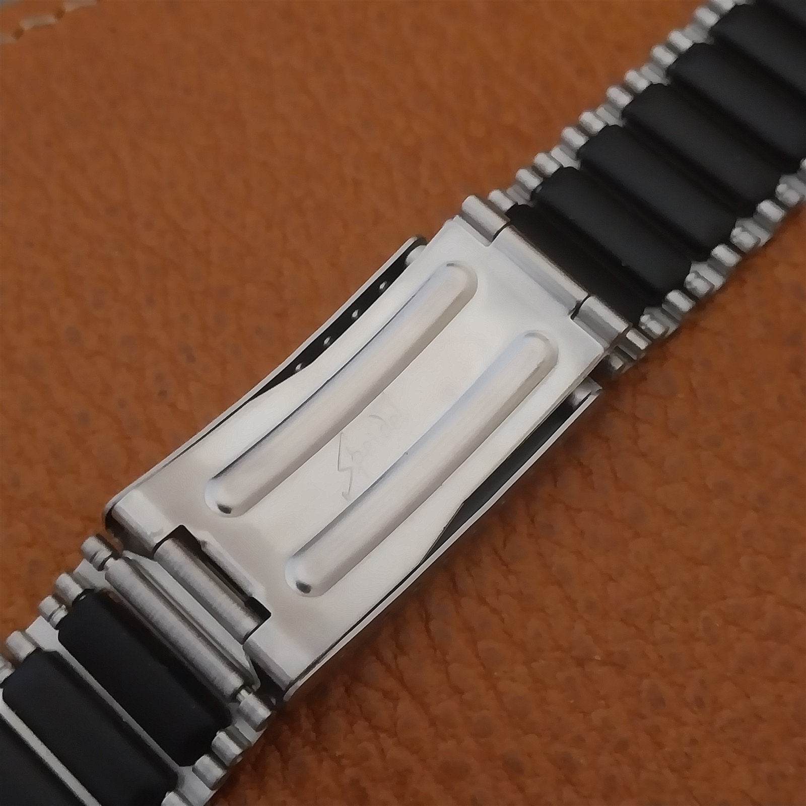 - NOS unused old-stock Speidel brushed stainless steel & black plastic deployment watch bracelet.