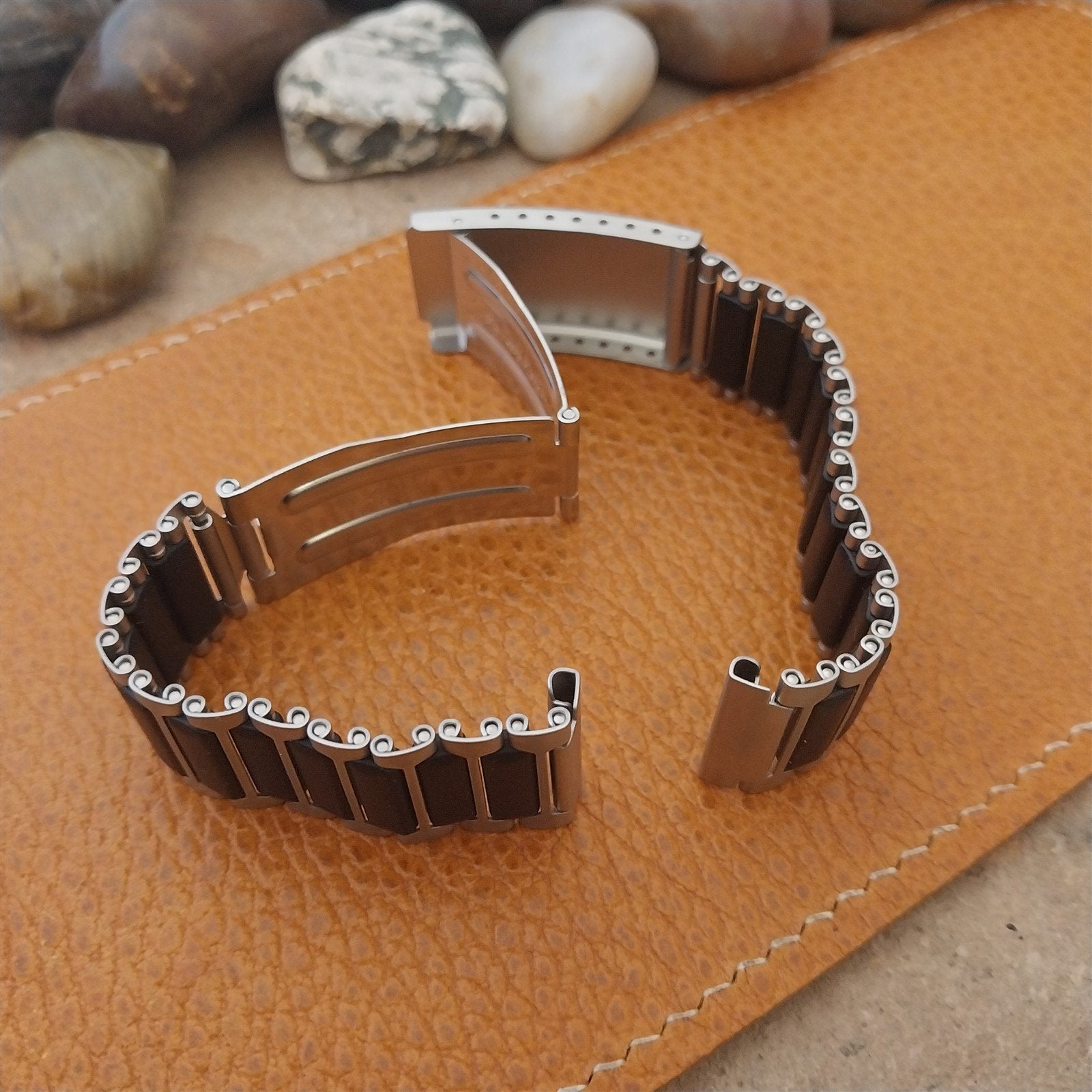 18mm Black & Stainless Steel Speidel Flared Unused nos Vintage Watch Band