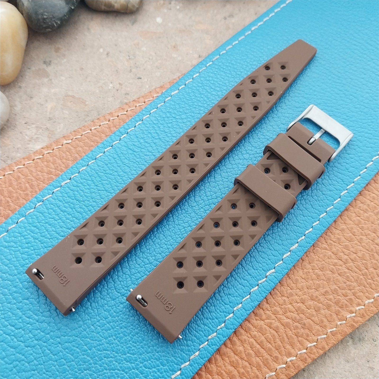 18mm FKM Brown Tropical Divers Watch Strap QR Spring Bars Bead Blasted Buckle