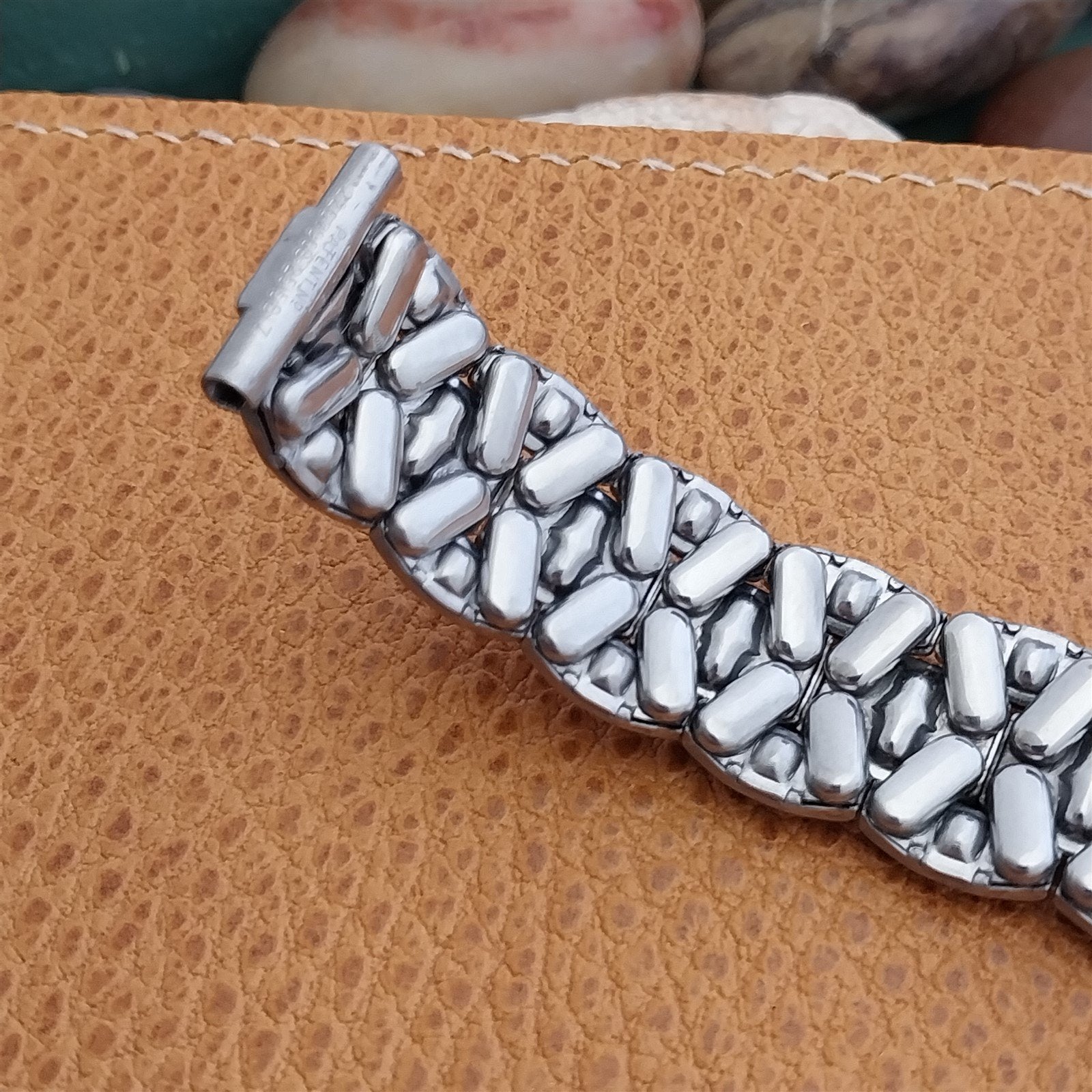 - NOS unused 1950s-1960s old-stock Kaye brushed stainless steel Quadra-Flex watch bracelet.