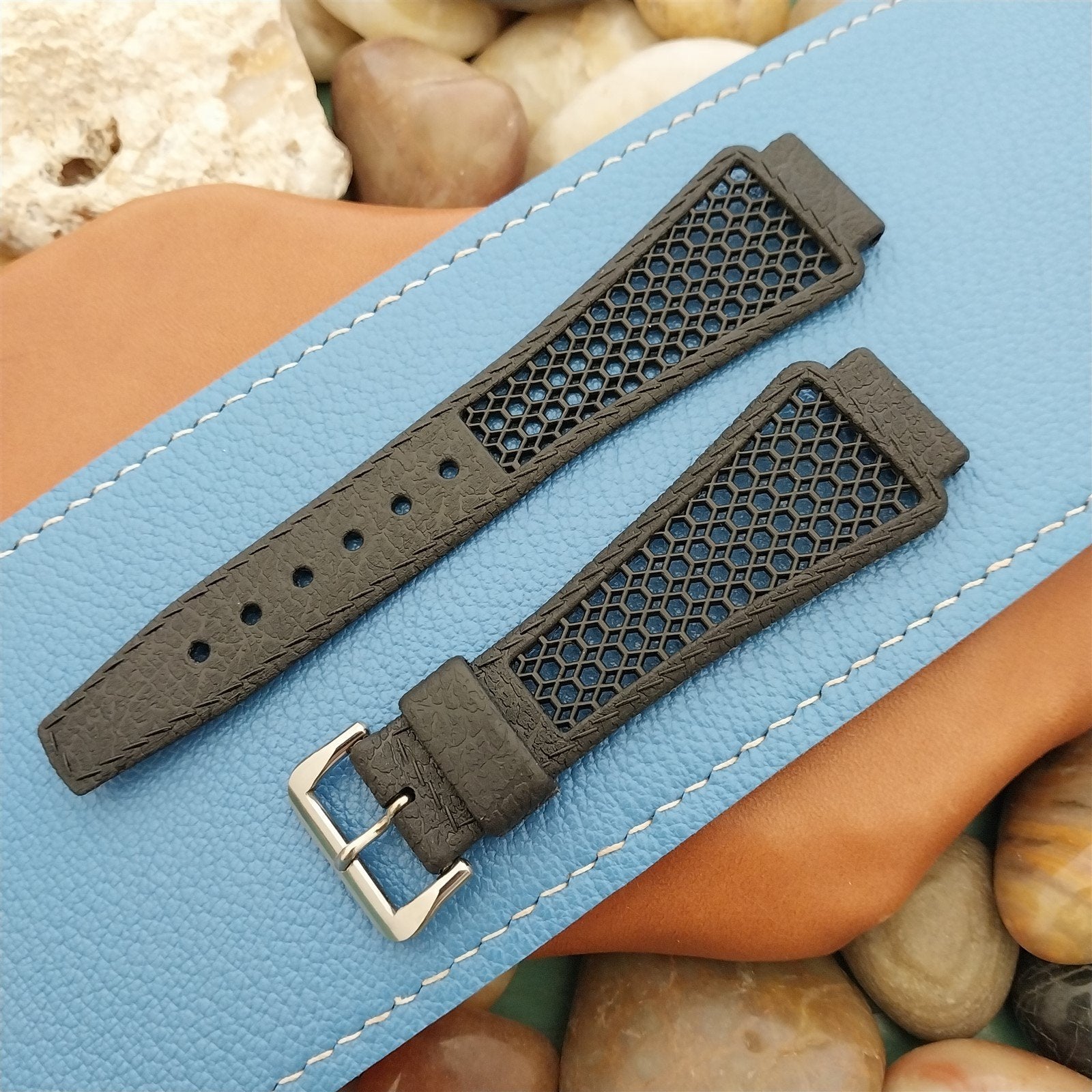 - NOS unused 1960s-1970s old-stock Golay and Guignard Playa ventilated black diver watch strap.