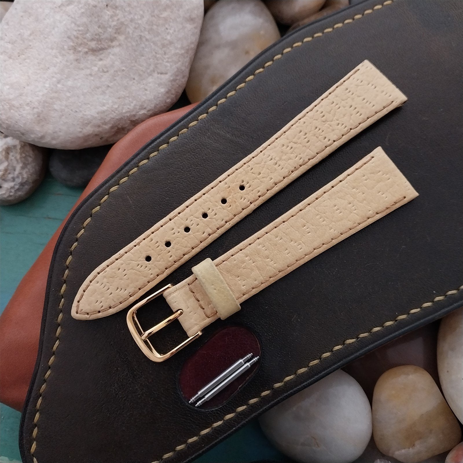 - NOS unused old-stock Speidel unpadded soft pigskin watch band with yellow gold-tone buckle.