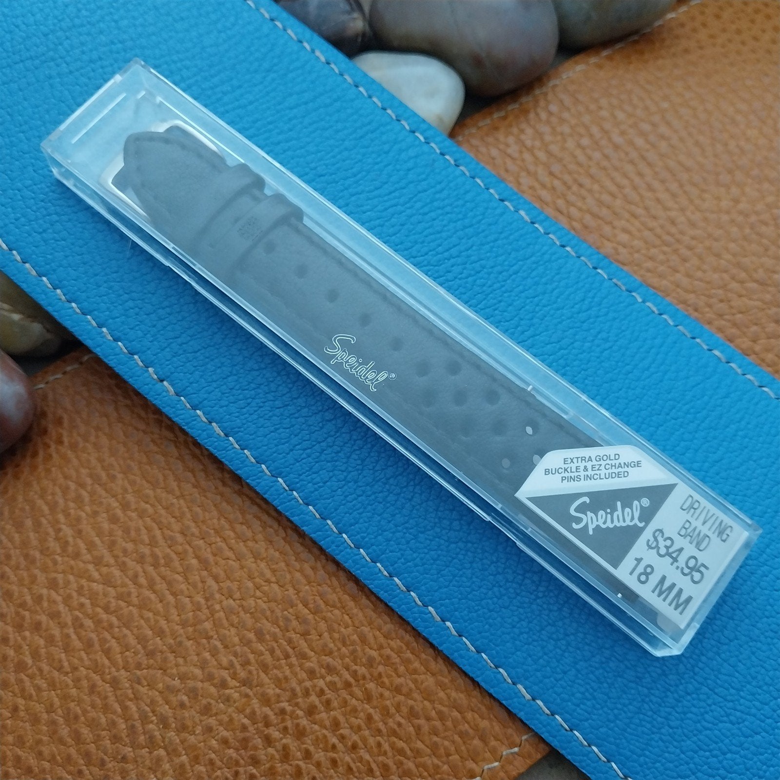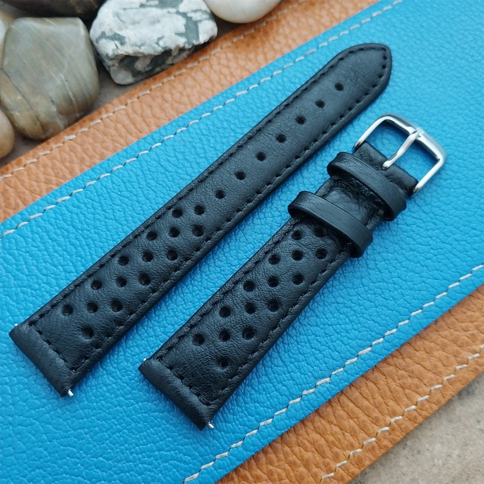 18mm Speidel Driving Strap Perforated Tapered Black Leather Unused Watch Band