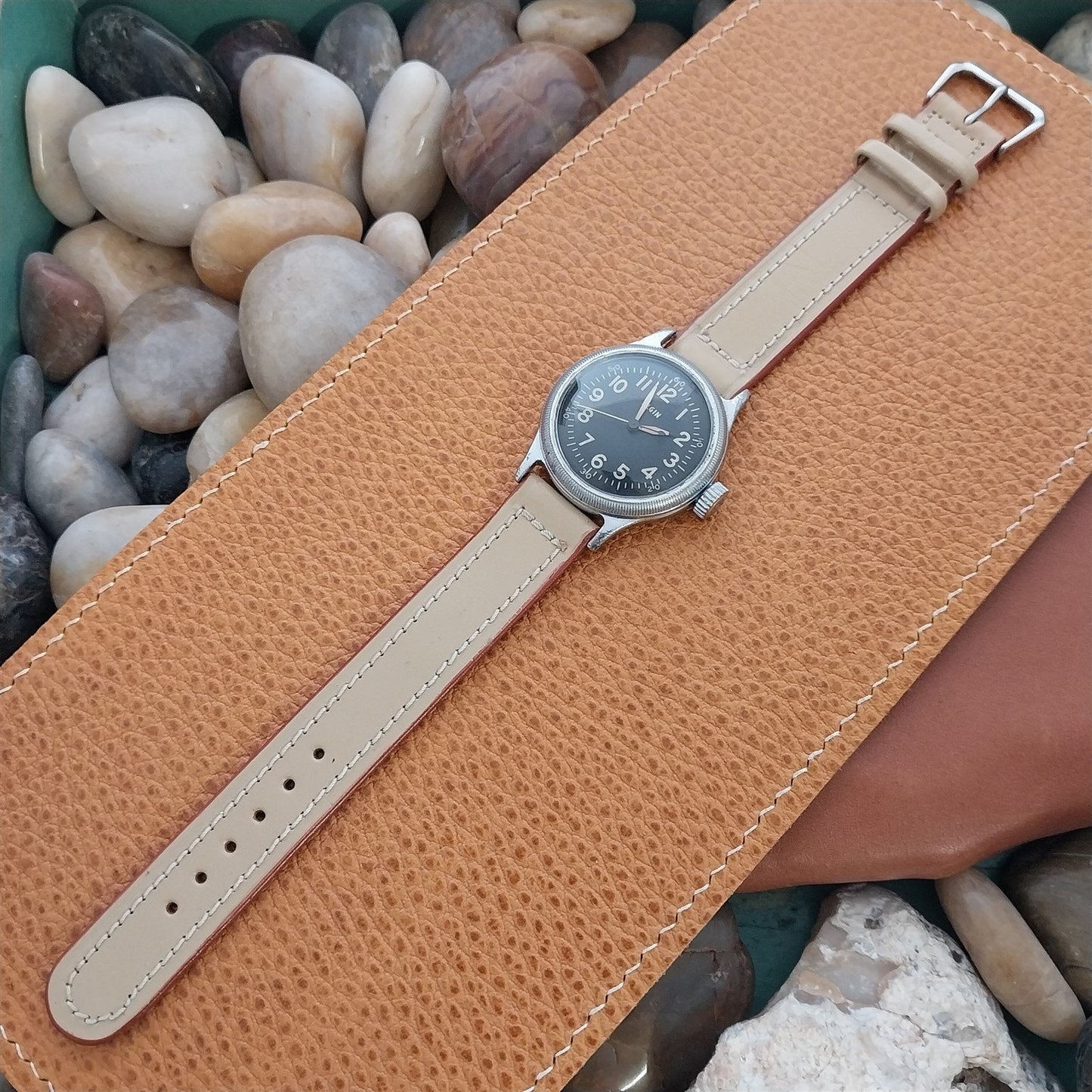1950s 5/8" Calfskin Leather Unused Vintage Watch Band & Stainless Steel Buckle