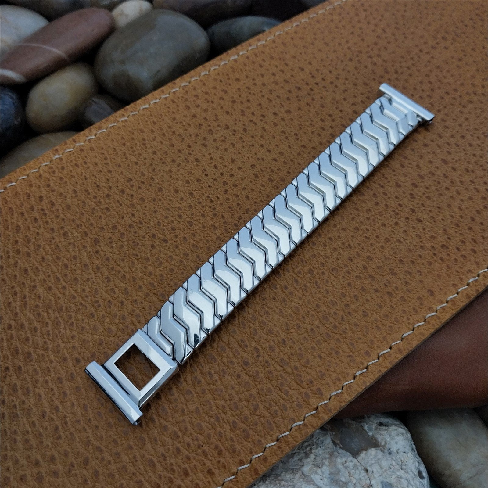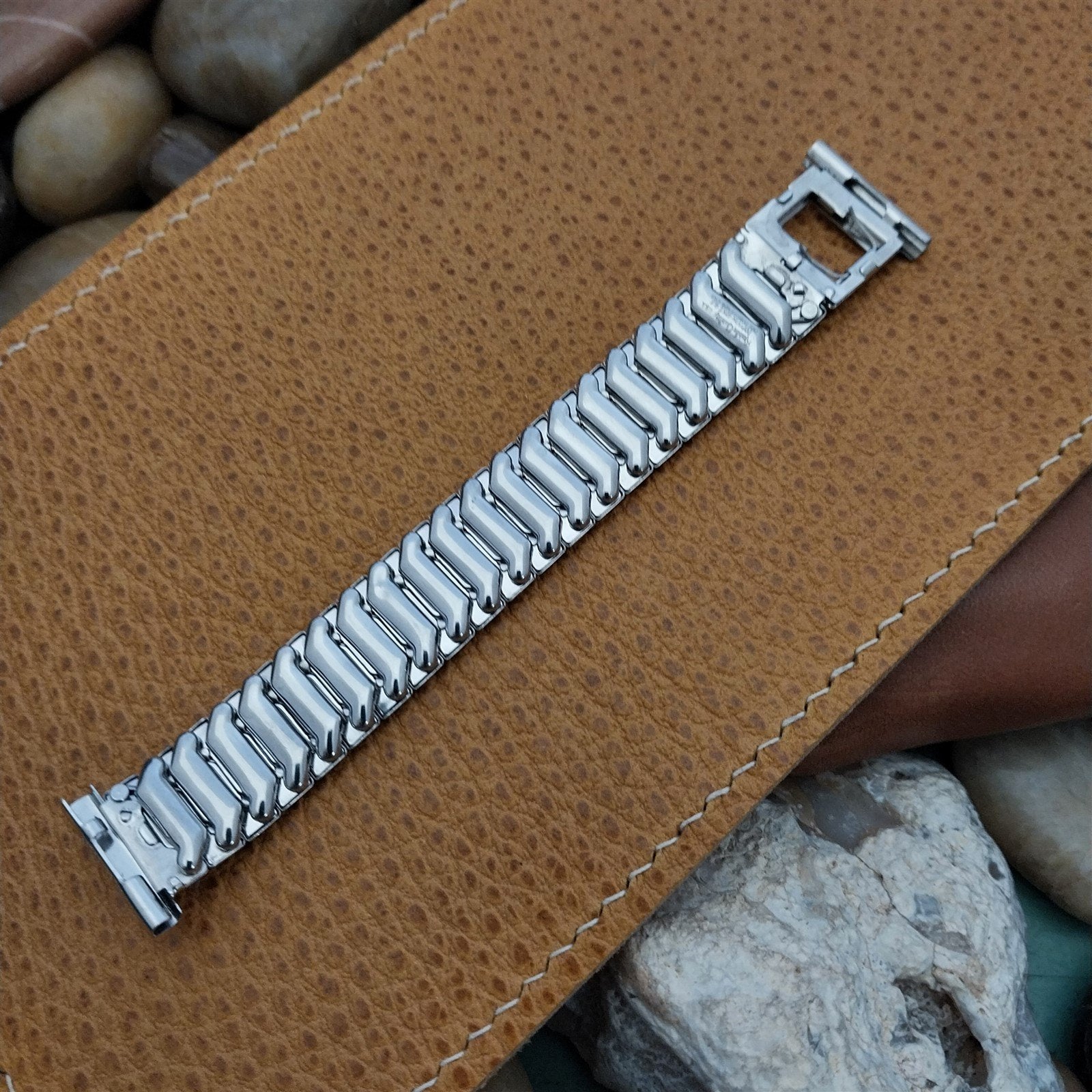 - NOS unused 1950s old-stock Kreisler Your Signet 14k white gold-filled scissor-expansion watch bracelet.