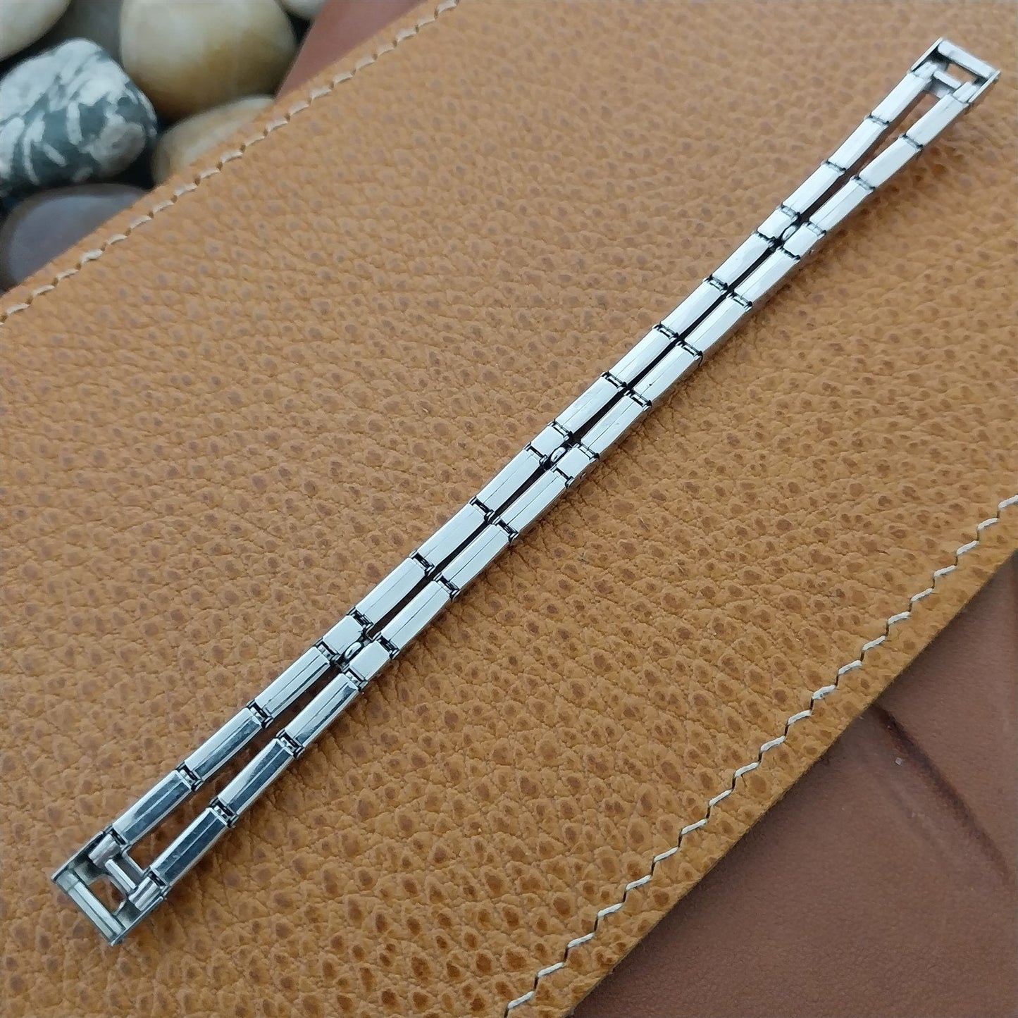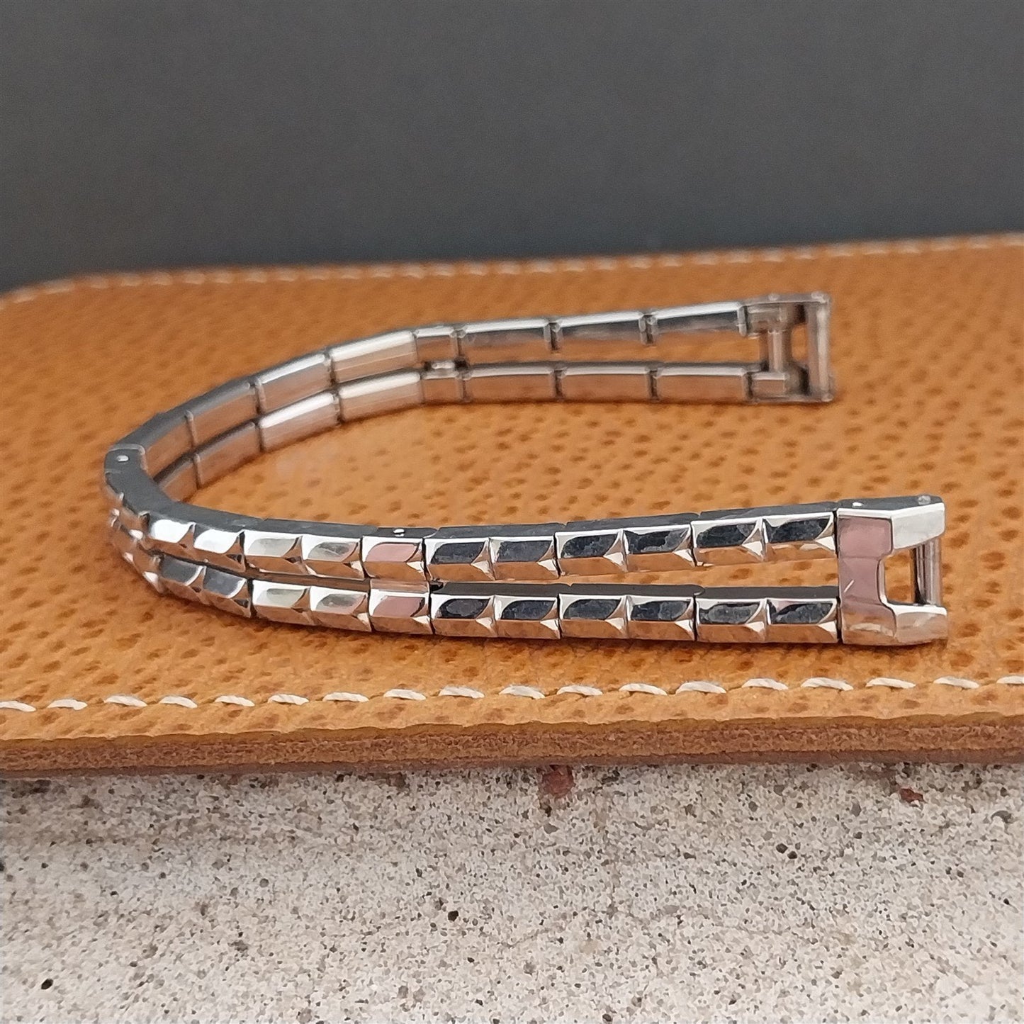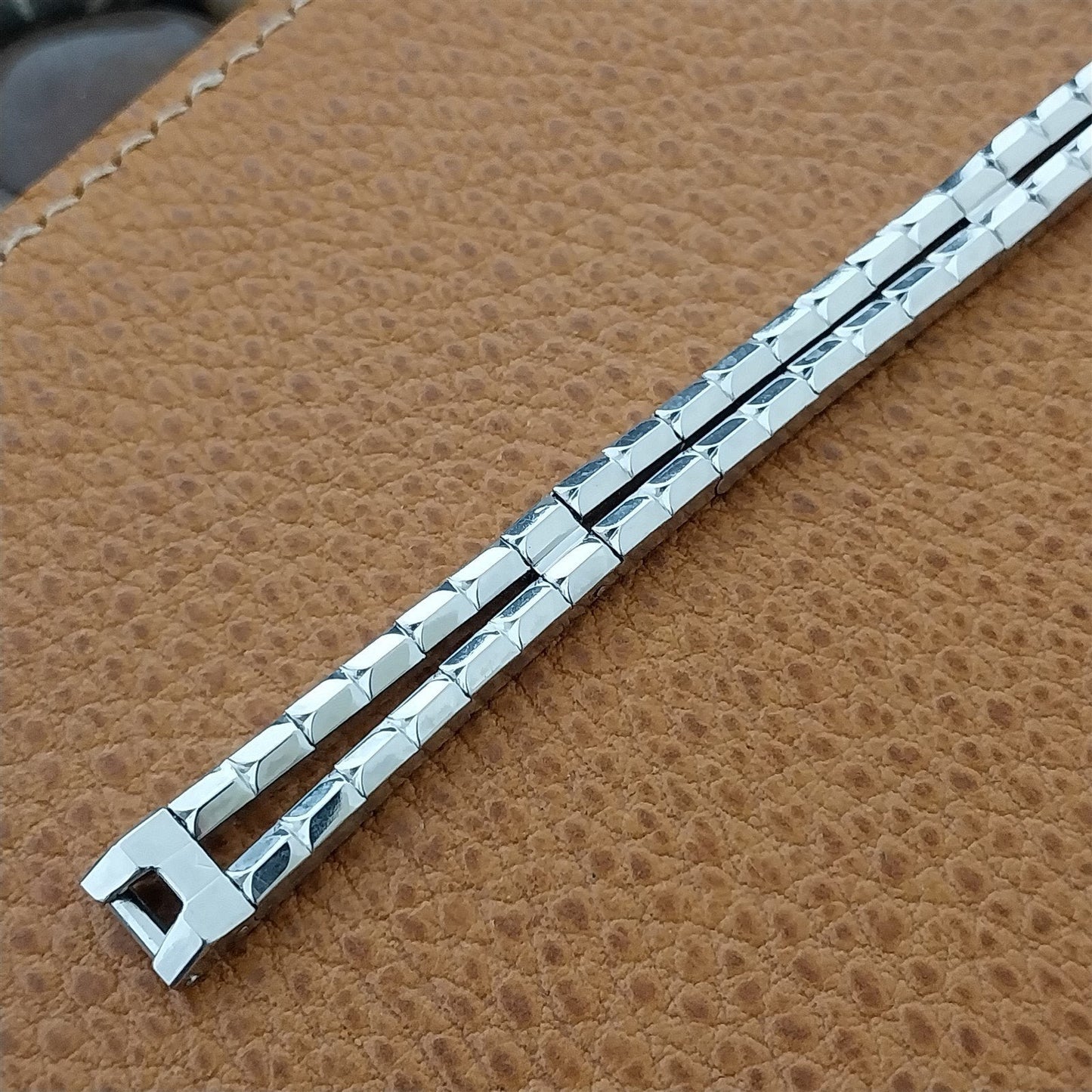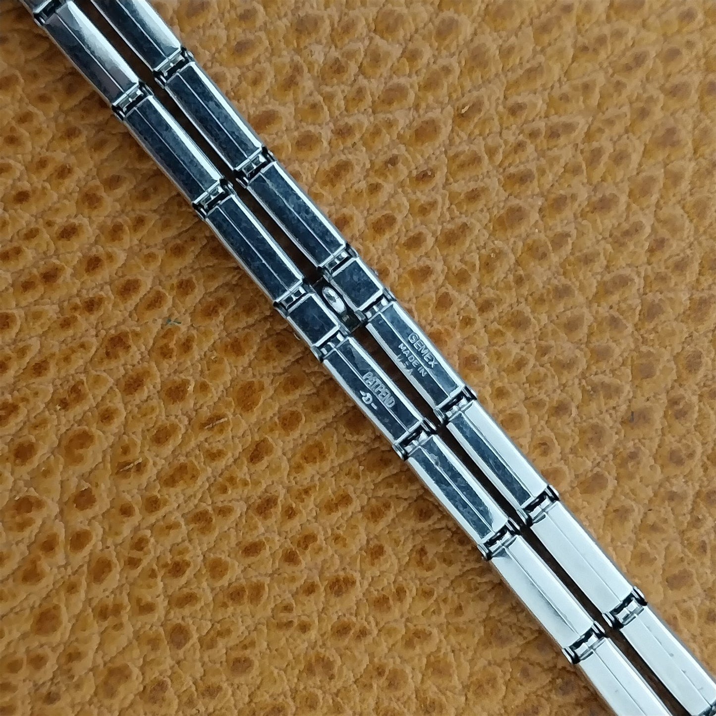 - NOS unused 1950s old-stock Gemex 1/15 12k white gold-filled expansion watch bracelet.