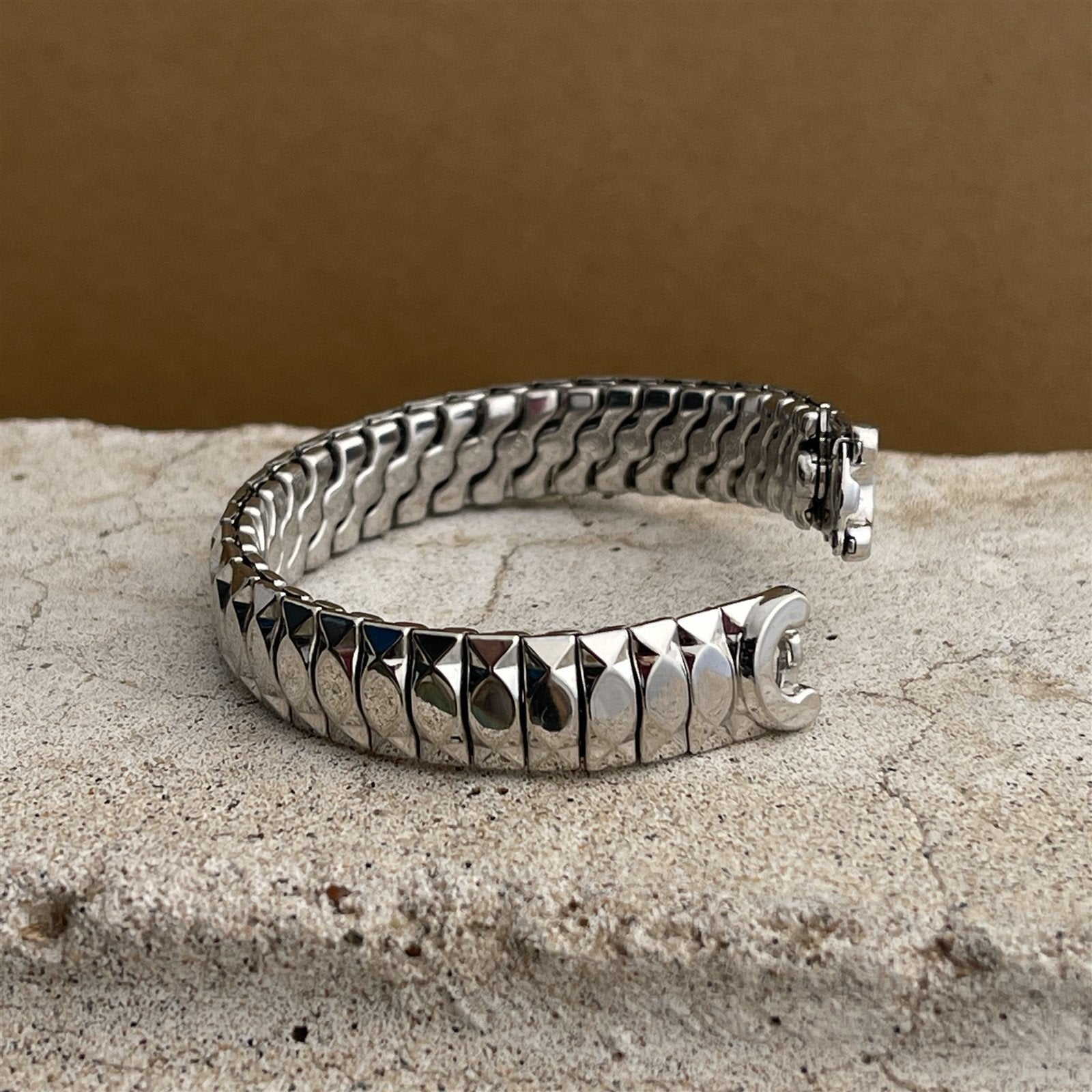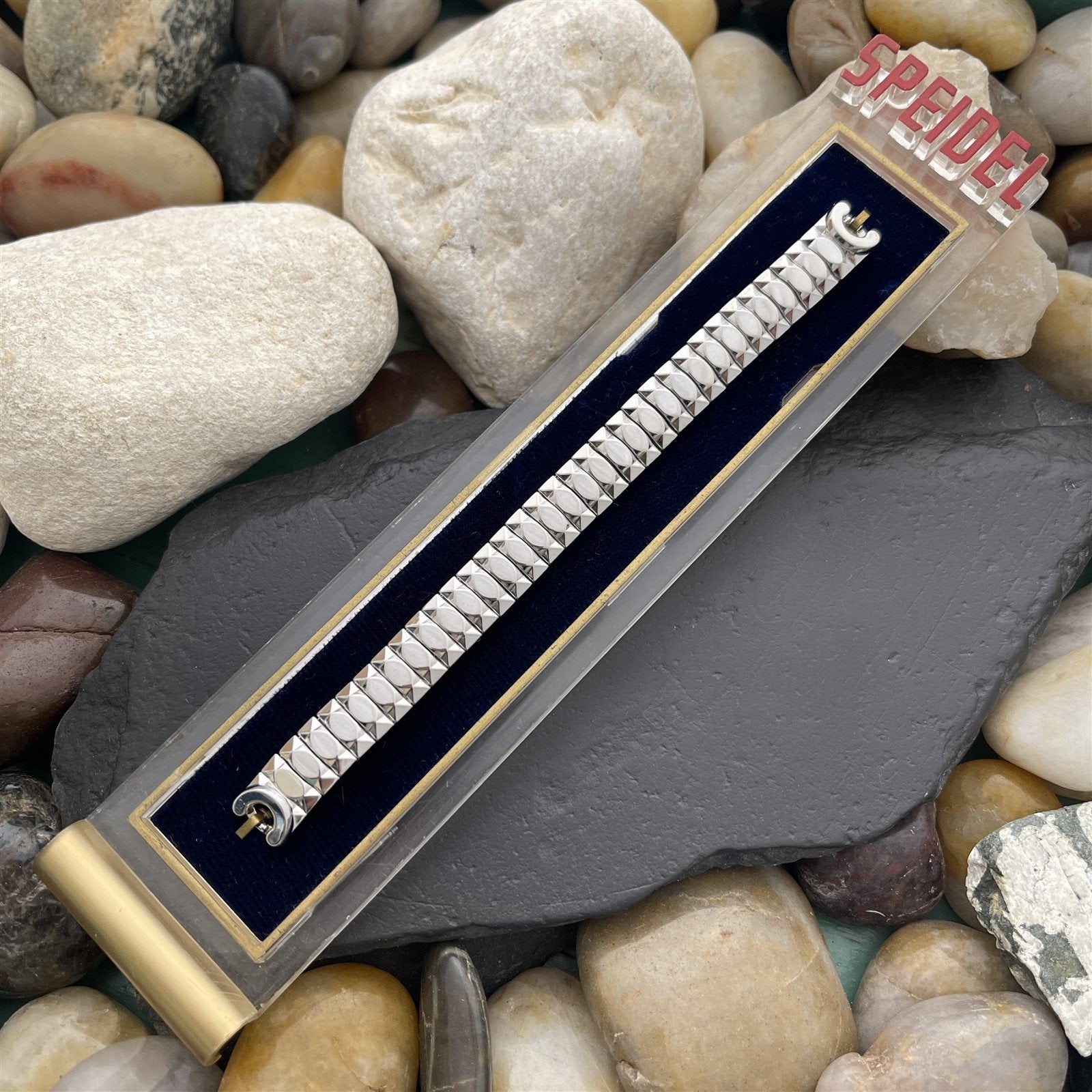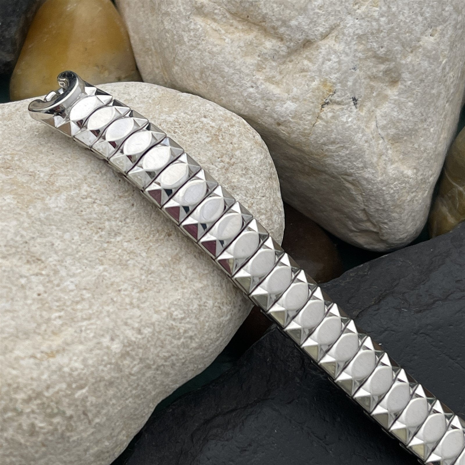 - NOS unused 1950s old-stock Speidel 10k white gold-filled stretch expansion cocktail watch bracelet.
