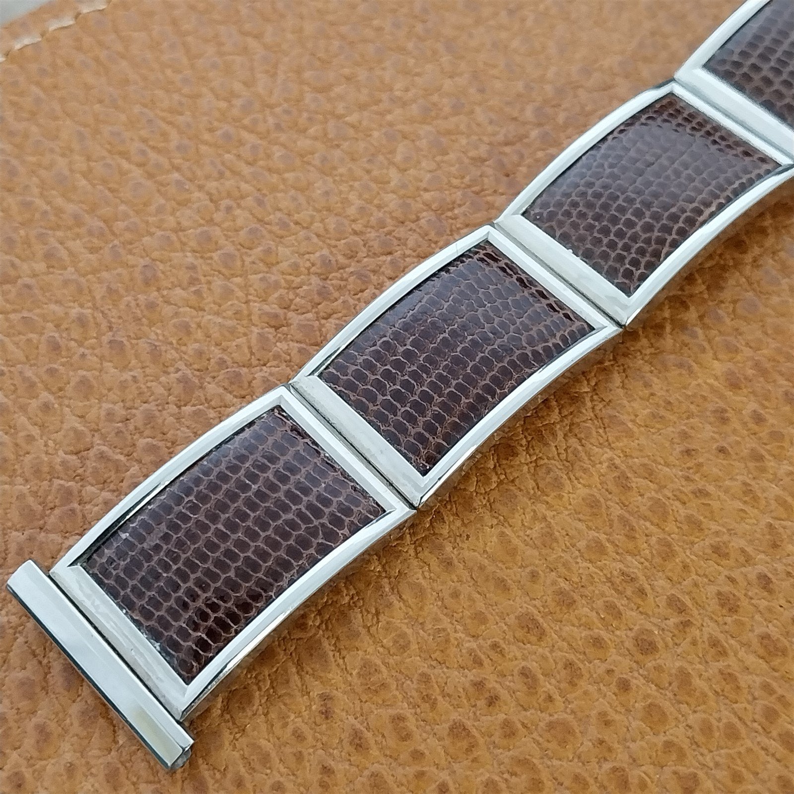 - NOS unused 1950s old-stock Speidel white gold-filled * brown lizard linear-expansion watch bracelet .