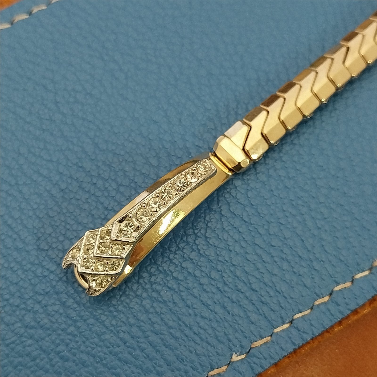 1950s Unused Ladies Yellow Gold-Filled Rhinestone Cocktail Vintage Watch Band