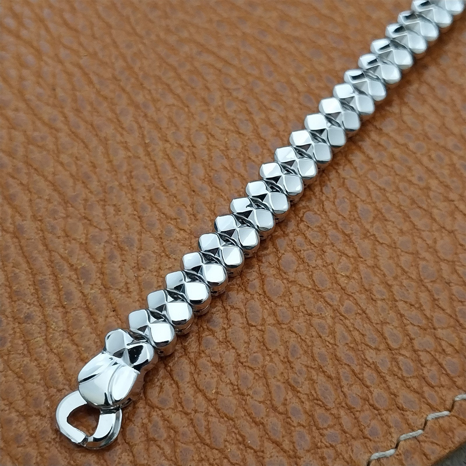 - NOS unused 1950s old-stock ladies JB Champion white gold filled stretch expansion cocktail watch bracelet.