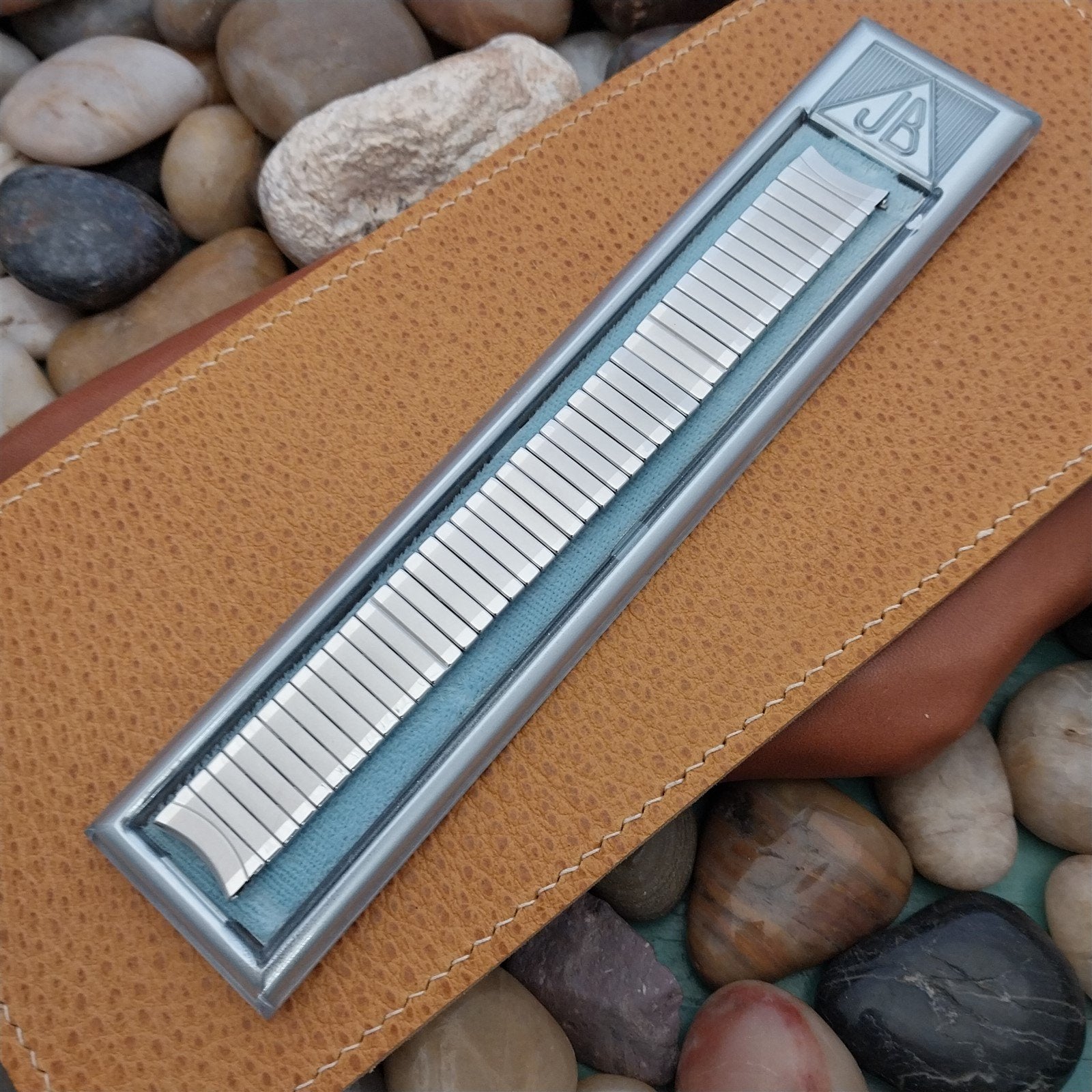 - NOS unused 1950s old-stock JB Champion stainless steel center scissor-expansion watch bracelet.