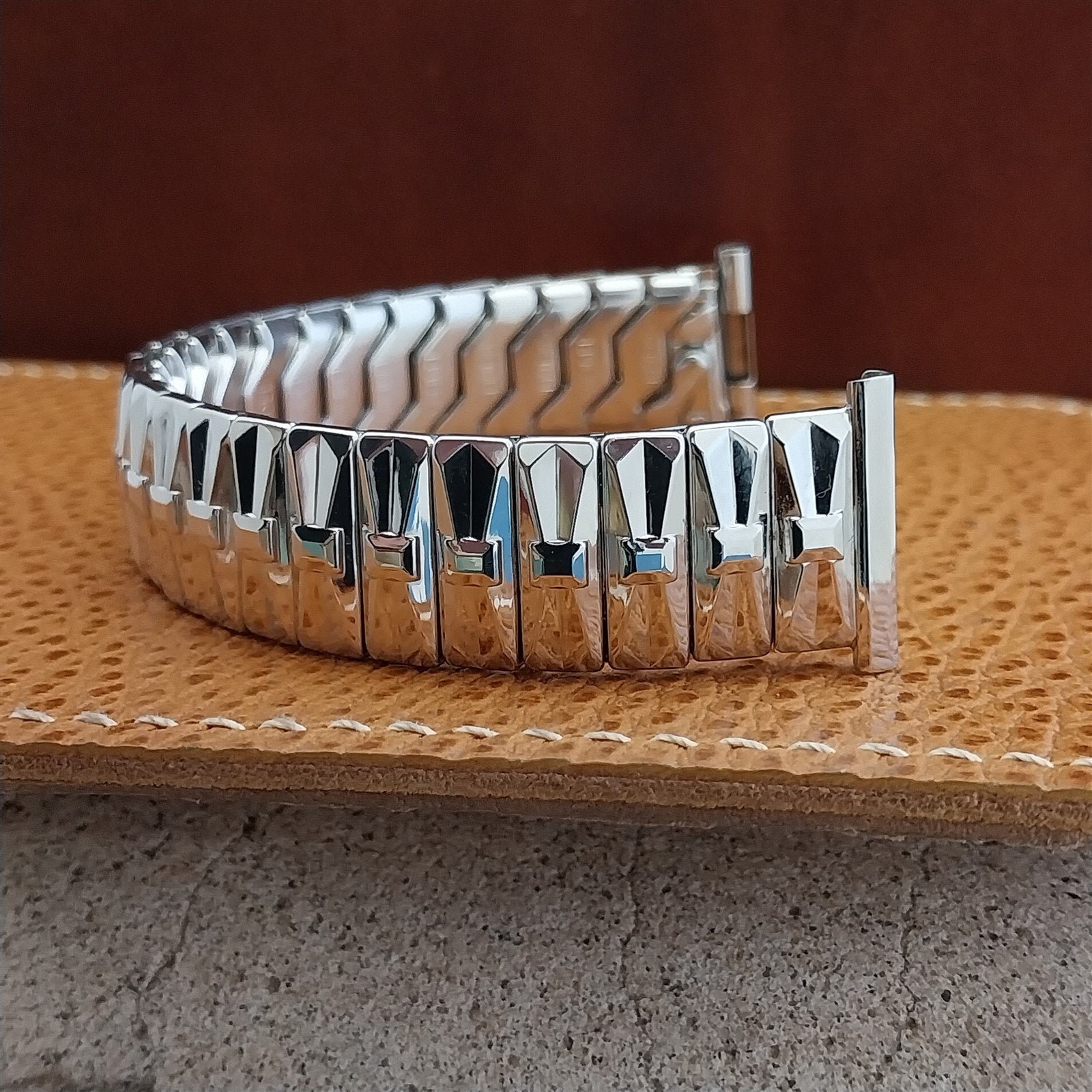 - NOS unused old-stock mcm 1957 Speidel High Ridge 1/20 10k white gold-filled scissor-expansion watch band.